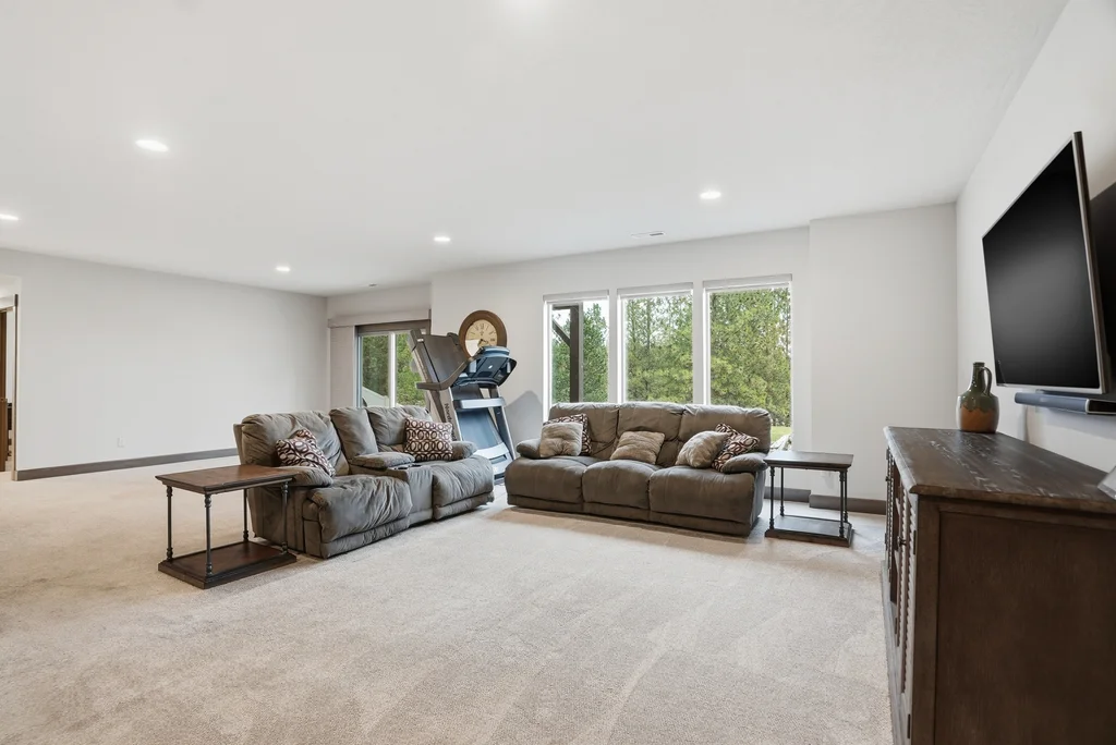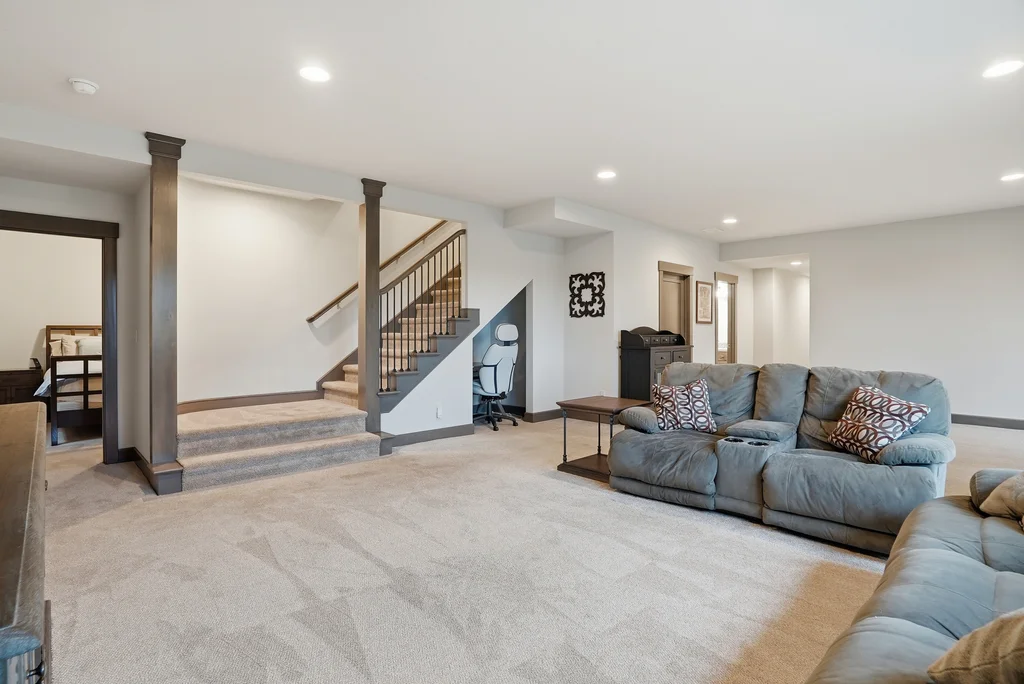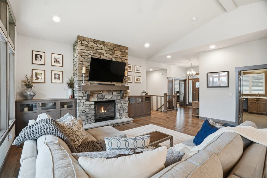 Built in 2017, this 3,758 sq ft residence offers 5 bedrooms, 3 bathrooms, and exceptional main-level living with a layout designed for both comfort and entertaining. The chef’s kitchen features granite countertops, an oversized island, custom two-tone cabinetry, double ovens, and a walk-in pantry, opening seamlessly to the great room with a striking fireplace and abundant natural light. A large, covered deck extends the living space and provides an ideal setting for year-round gatherings. The main-level primary suite includes a spa-inspired 5-piece ensuite and a spacious walk-in closet. The lower level offers 10-foot ceilings and ample natural light create a welcoming space ideal for hosting friends and family, game nights, or relaxed entertaining.