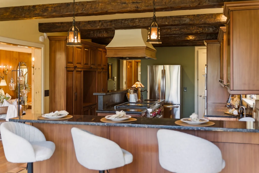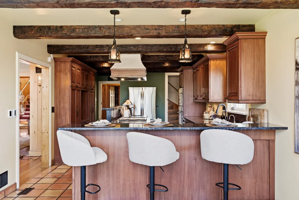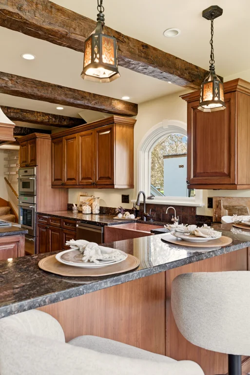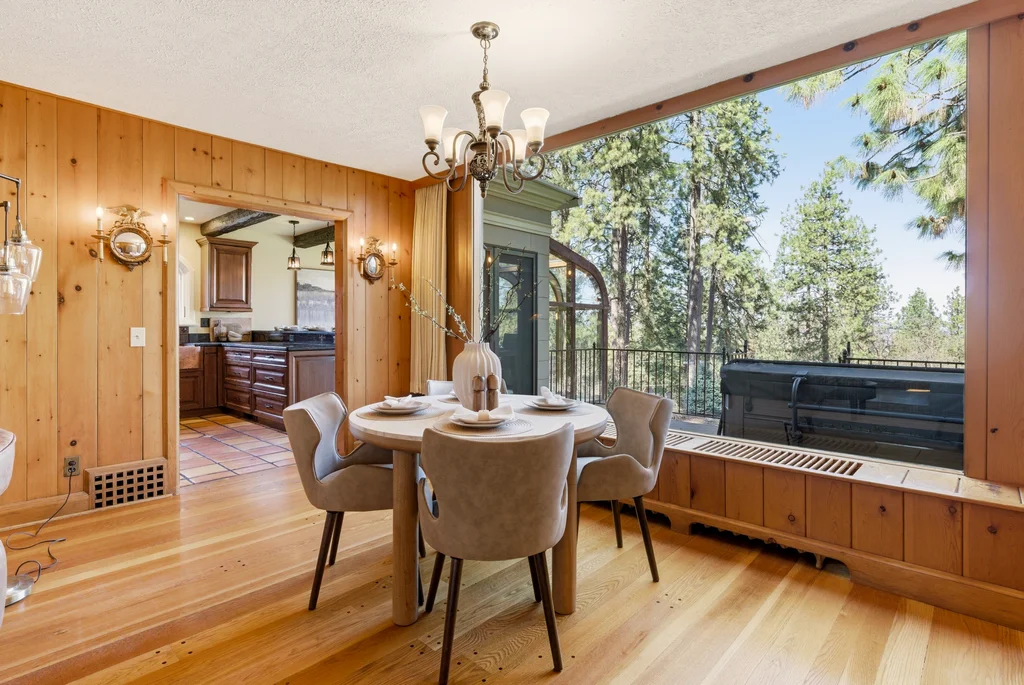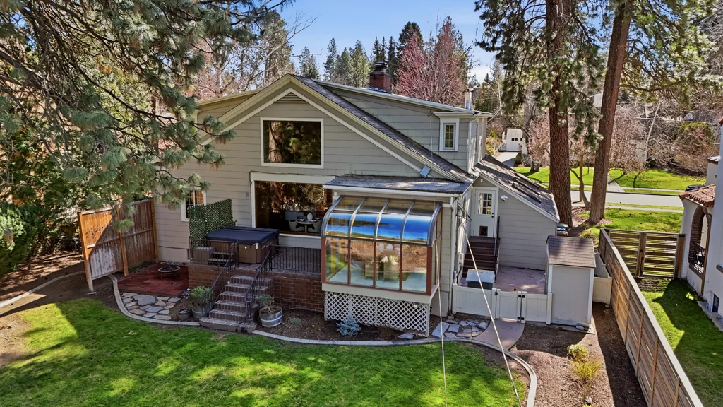 Nestled on a large, private view lot just above the Perry District in the highly sought-after Rockwood neighborhood, this warm and historic Overbluff Road home perfectly blends architectural charm with modern updates. Original peg flooring and knotty pine flow through the spacious living room, past the oversized gas fireplace, to a massive picture window framing stunning views. The kitchen features heated floors, granite counters, a Wolf range, brand-new appliances, and a copper sink overlooking a bright solarium eating area. Upstairs, the flawless layout includes a luxurious primary ensuite, a vaulted family room with distant views, and a full guest wing with its own bath, bedroom, and private staircase to the kitchen. The basement offers two attached garages and an ADU-ready space with a custom gym, sauna, and more. Outside, enjoy the full porch, meticulously landscaped grounds, hot tub, expansive views, and your very own custom putting and chipping green. See this one today — it’s truly special.