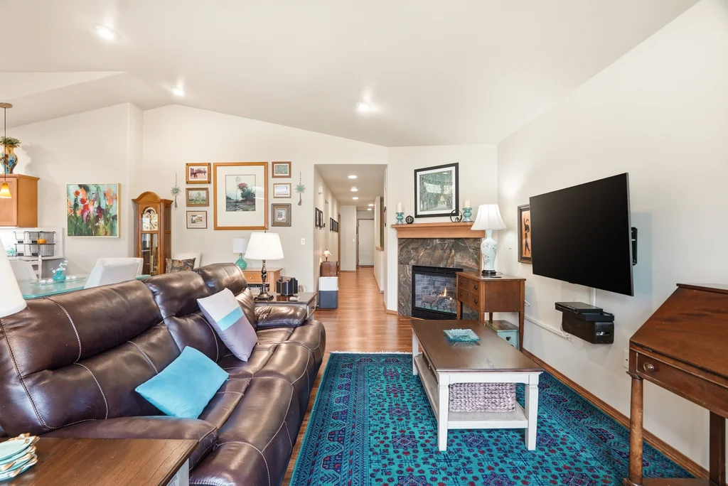 Rare opportunity to own a condo in the 55+ Mill Village Condos. Wonderfully cared for and located on the northside of Spokane within minutes of all the expected amenities. This condo represents the "lock-n-go" lifestyle as all outside upkeep is taken care of for you. Affordable monthly HOA fee that covers snow removal, mowing, landscaping, etc. Easy main floor living with plenty of additional space as needed in the basement. The main features an open concept kitchen, living, and dining. Kitchen includes refrigerator, microwave, gas range, dishwasher, and granite counters with eating bar. Cathedral ceilings and plenty of windows give the home a bright and spacious feel. Gas fireplace in the living room. Primary bedroom is oversized with an ensuite bath that includes double sinks and a walk-in closet. 2nd bedroom and bath on the main as well. Laundry room with utility sink. The full basement offers an oversized family room, 9-foot ceilings, bed, bath, & storage. 2-car attached garage.