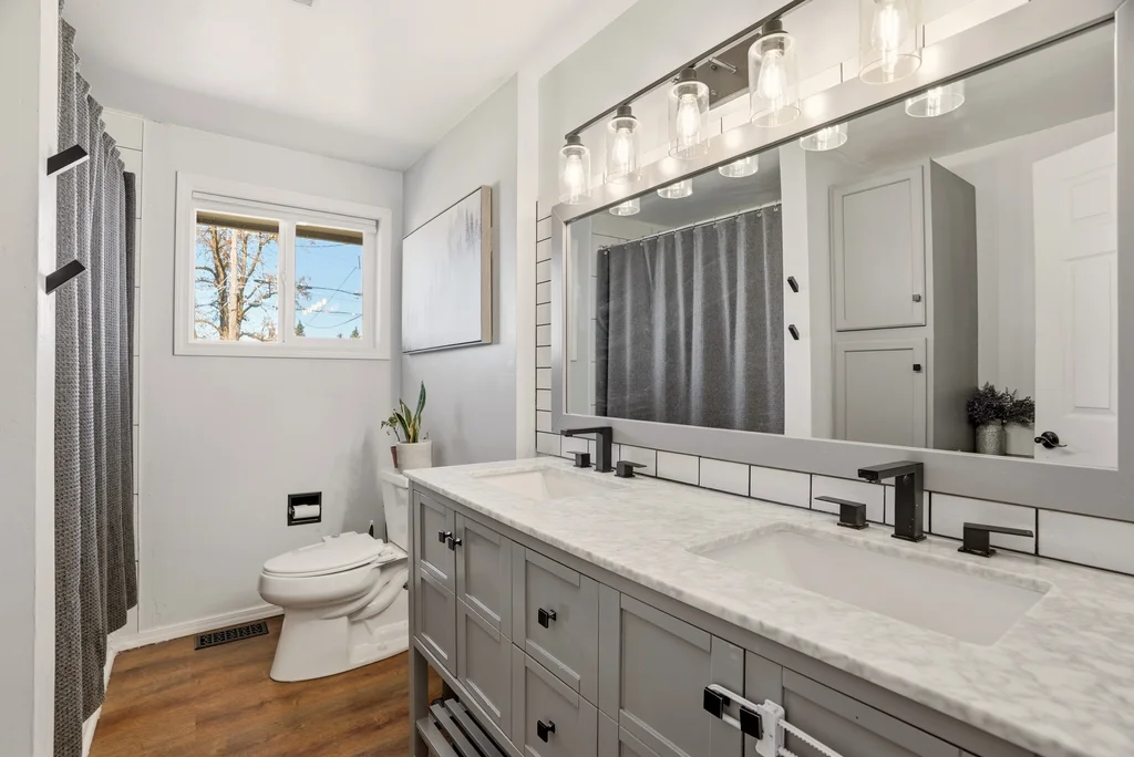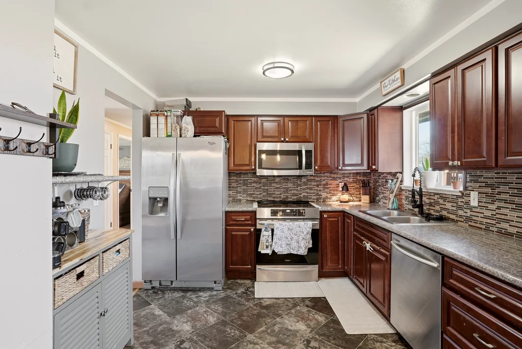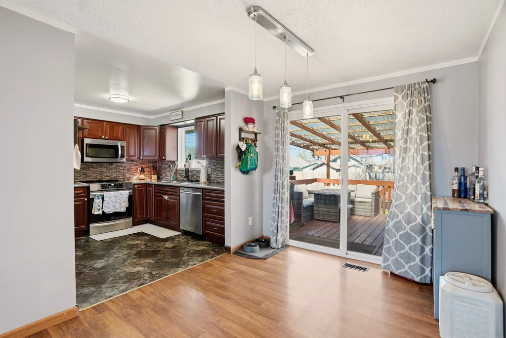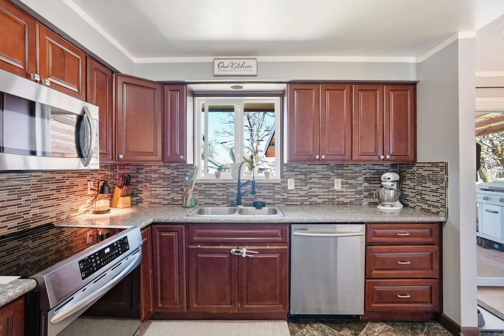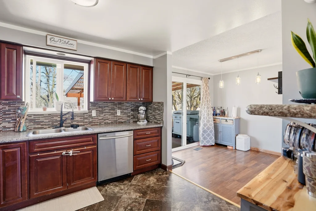 Located on a quiet cul-de-sac in the Bemiss neighborhood, this beautifully updated 4-bedroom, 2-bathroom split-entry home offers a perfect blend of modern style and functional space. The upper level features a bright, open-concept floor plan highlighted by a contemporary kitchen with granite countertops, sleek cabinetry, and stainless steel appliances. Sophisticated tile work and updated flooring flow throughout the home, creating a cohesive and polished feel. The fully finished basement expands your living options with a large family room featuring a cozy woodstove, a dedicated laundry area, and a convenient separate entrance. Practical upgrades include a roof replaced in 2017 and vinyl windows for energy efficiency. Step outside to an oversized, fully fenced backyard that offers plenty of privacy and room for a future shop or garage with easy alley access. Centrally located near schools and parks, this move-in-ready home combines stylish 2017 renovations with the peace of a serene neighborhood setting.