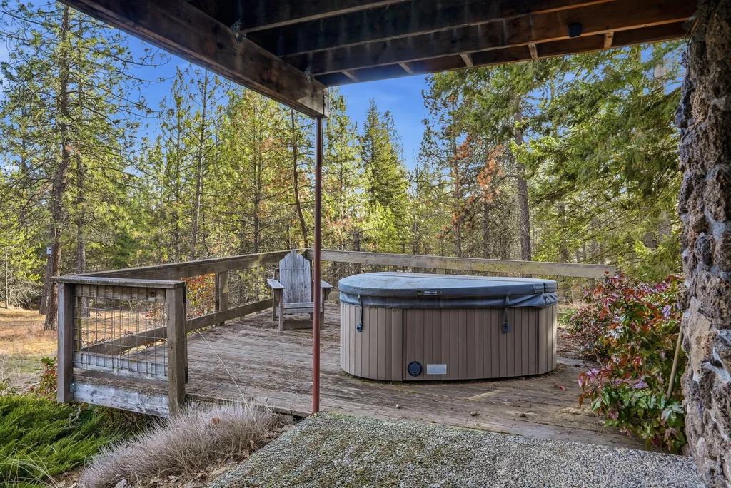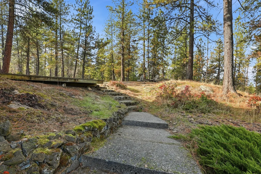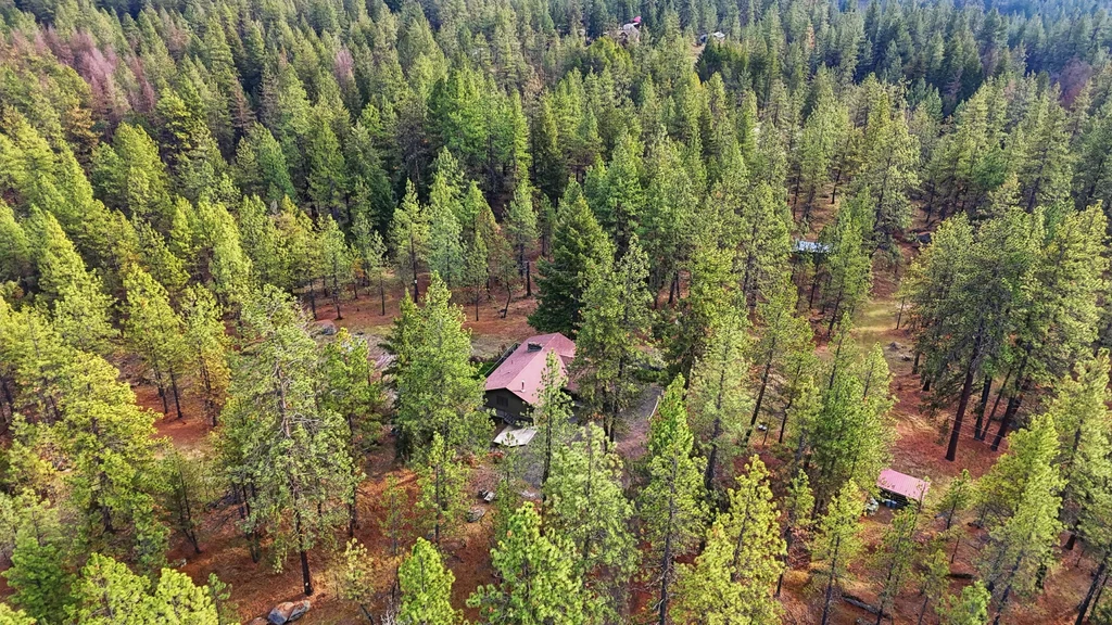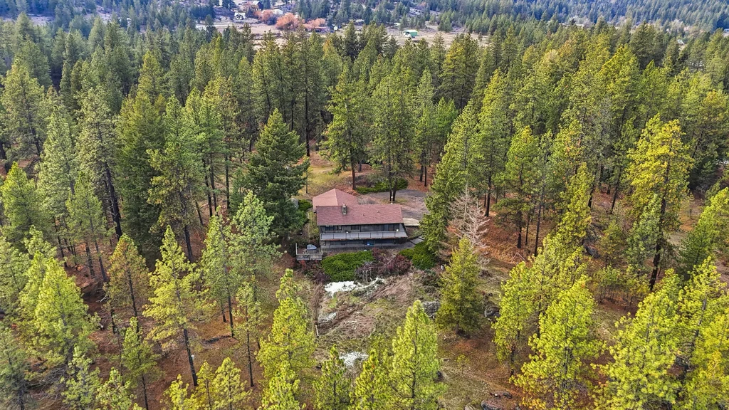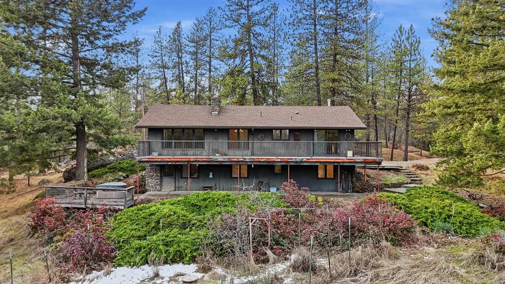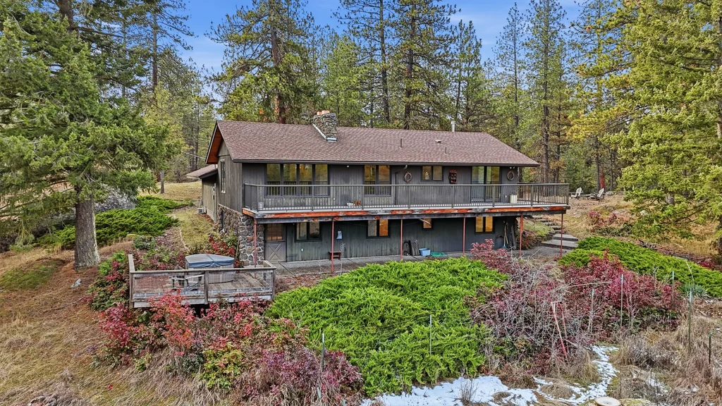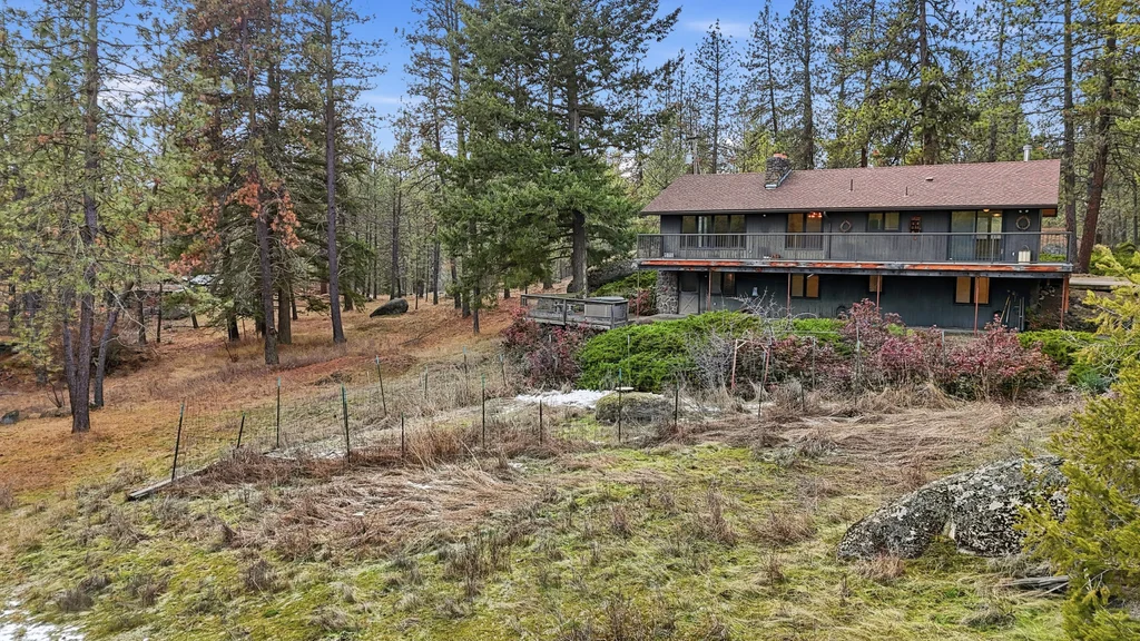 A once-in-a-generation opportunity awaits with this secluded 36-acre wooded estate, available for the first time since it was built in 1967. Tucked away for ultimate privacy at the end of a long drive, this 2,243 sqft retreat offers a rare blend of mid-century integrity and expansive natural beauty. Meticulously cared for by the same family for nearly 60 years, the home features a main level with hardwood floors and a striking dual-sided wood fireplace that serves as the architectural heart of the living room area. An oversized back deck, offering breathtaking, territorial views of your own private forest and mature timber. With 3 bedrooms, 2 bathrooms, and a 2-car garage, the structure is rock-solid and provides the perfect canvas for a modern renovation. The sprawling acreage functions as a true basecamp for the Inland Northwest lifestyle, complete with winding trails and garden spaces, offering total seclusion just minutes from Wandermere shopping center.