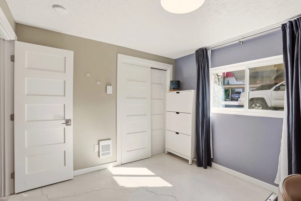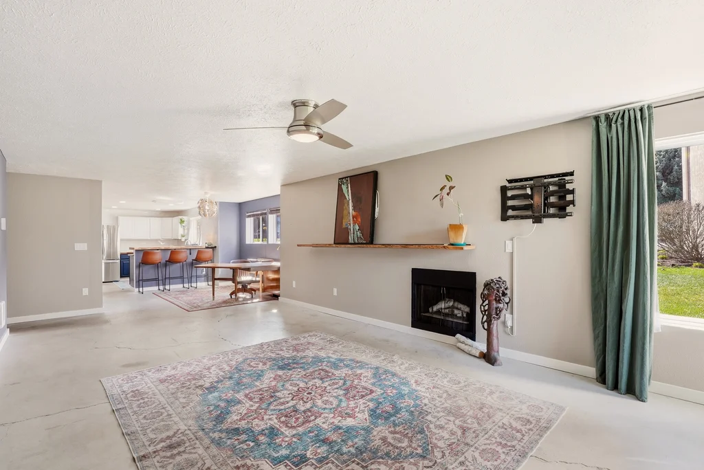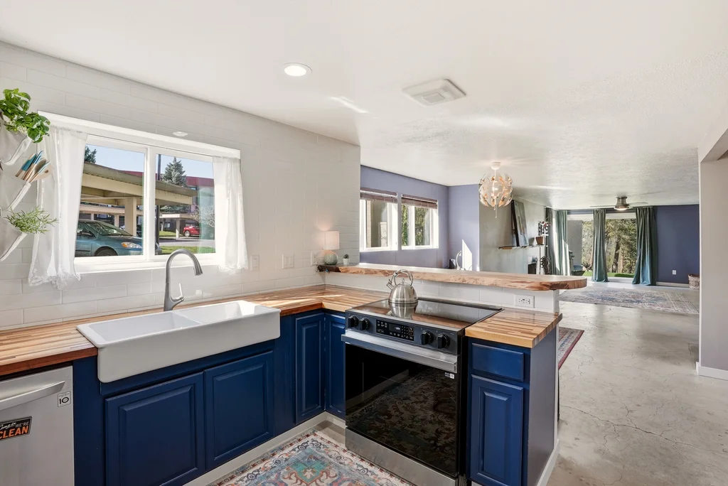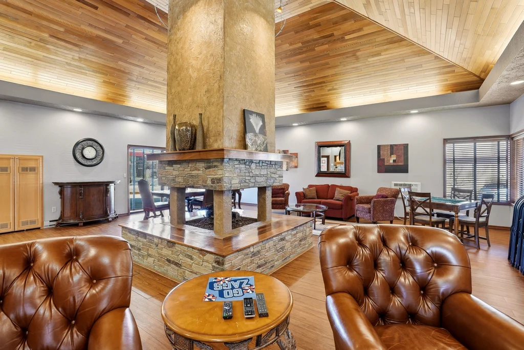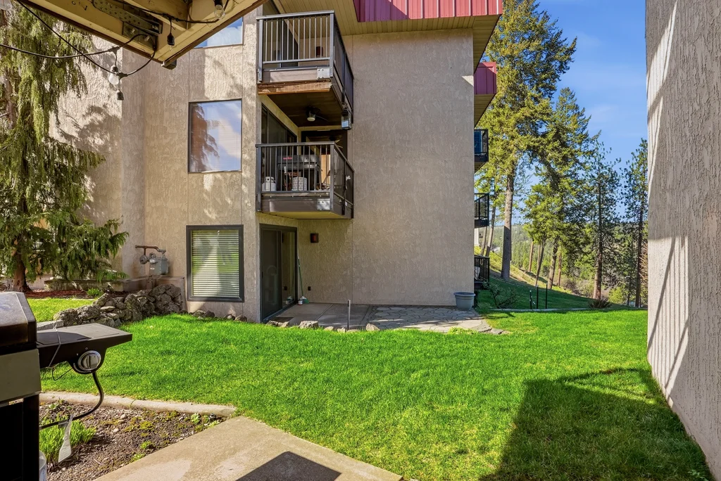 Experience a masterclass in modern-industrial design with this fully updated 2-bed, 2-bath main-floor sanctuary. Forget the cookie-cutter aesthetic; this home makes a bold statement with polished concrete floors, charcoal accents, and bespoke live-edge wood surfaces. Your daily retreat begins on the private patio, which overlooks a lush green slope leading directly to the Spokane River, framed by towering pines and rugged terrain. The designer kitchen serves as the heart of the home, featuring a stunning live-edge breakfast bar, farmhouse sink, and high-end stainless appliances against a crisp subway tile backdrop. Both bathrooms are transformed into spa-inspired spaces with glass-enclosed walk-in showers and custom vanities. Living here means effortless, stairs-free access and exclusive entry to the private community pool and clubhouse. Whether you are watching the river flow from your living room or lounging by the pool, this condo offers a rare blend of Pacific Northwest beauty and sophisticated style.