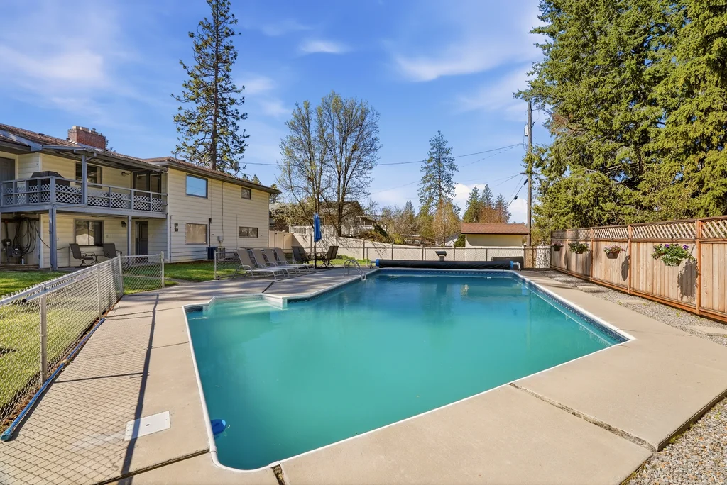 Live the ideal outdoor Spokane lifestyle in this South Hill daylight rancher! Walkable, bikeable and overall lovable location next to the nature trails of Hamblen Park & Hamblen Elementary field. An entertainer’s dream with 3,228 sq ft of spacious living and the perfect summer backyard – complete with a large lawn and fantastic pool! Comfortable spaces with upgrades in all the right places. New LVP floors stretch from the living areas through all 3 main floor bedrooms. Main bath has new shower tile & flooring, plus a full new bath in basement. Kitchen updated with butcher block countertops, stainless steel appliances and tons of cabinet space. Walkout basement has a large rec room, 2 more bedrooms + flex room & storage. Brand new furnace, AC, gutters; and pool has new liner, pump & heater! Fenced .27 acre corner lot with a covered back deck and a private, sunny backyard ready for endless fun & gatherings. Convenient South Hill location, close to shopping, schools, restaurants & services. Don’t miss out!