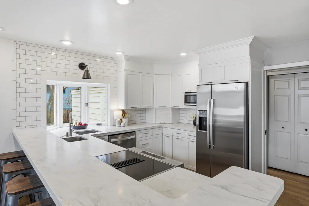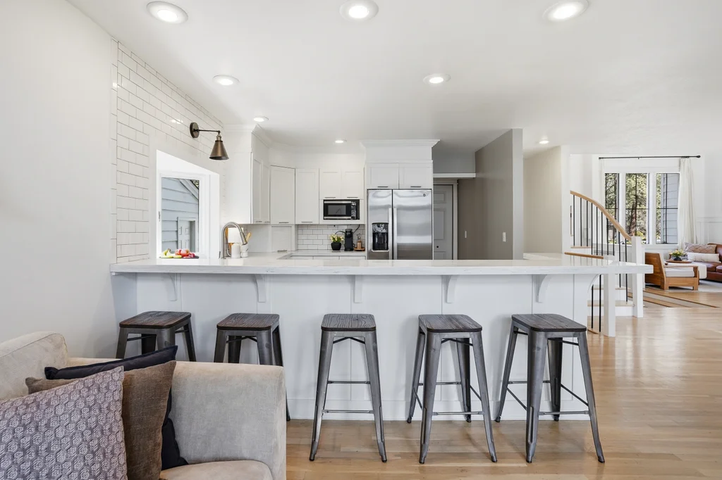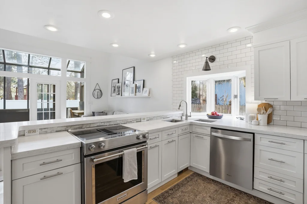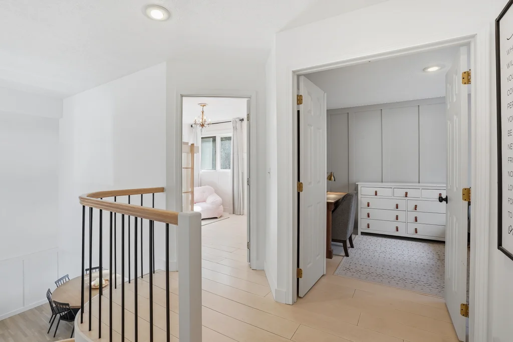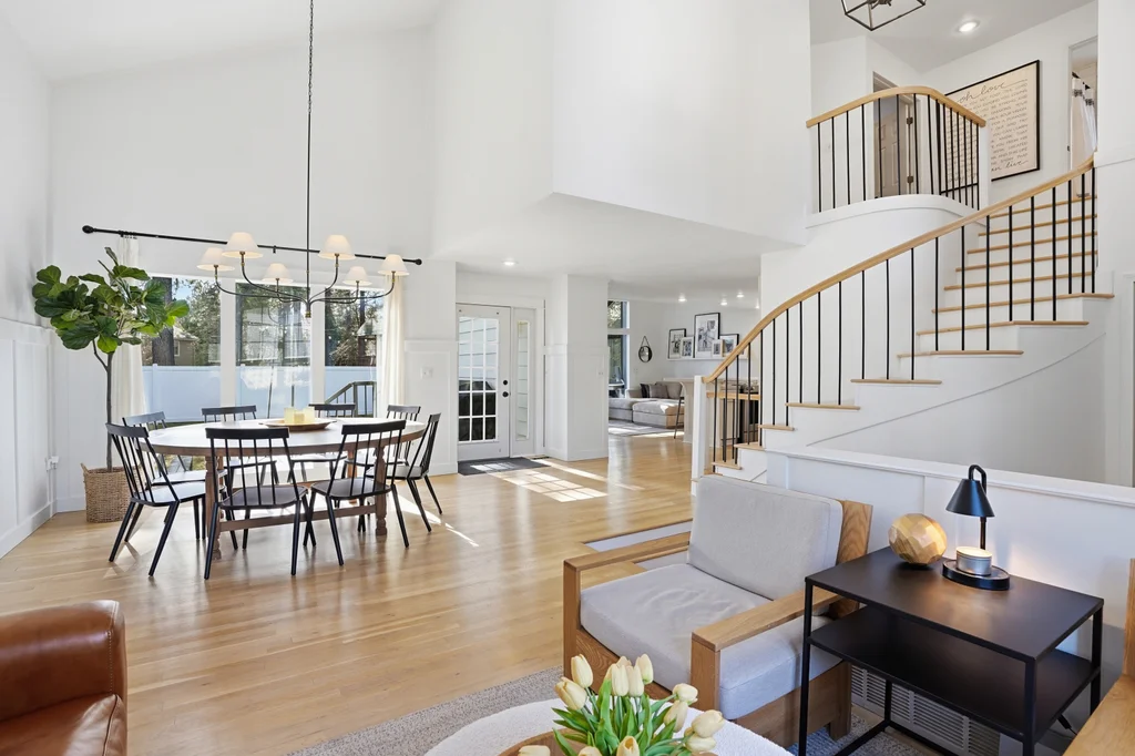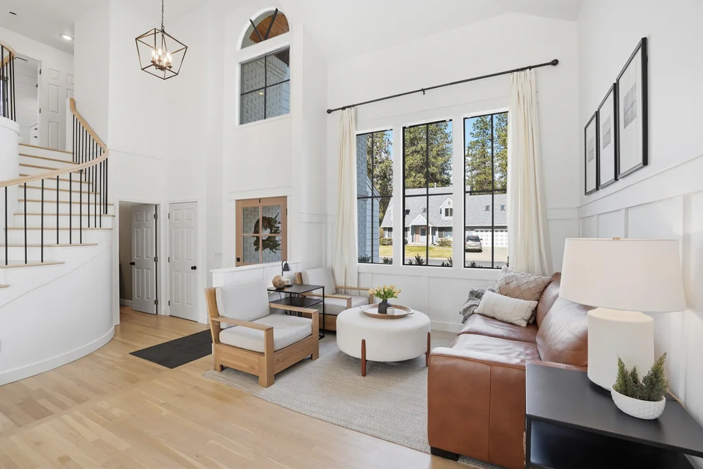 Tucked on a quiet, non-through street in the highly sought-after Mead School District, this beautifully designed 4 bed, 4 bath home features a finished basement and Pinterest-worthy heated sunroom! Elevated design meets everyday living in a space that feels as intentional as it is beautiful- where clean white interiors, warm hardwood floors, and striking black-framed windows create a look that is both modern and timeless. A sculptural curved staircase anchors the home, while the open-concept kitchen and living areas are designed for connection and a seamless flow. The light-filled, heated and picturesque sunroom offers a bright office or creative flex space. Upstairs, spacious bedrooms and the updated primary suite provide flexibility, while the finished daylight basement adds a second living area for media, guests, and spreading out. Thoughtful finishes, a peaceful setting, and access to top-rated schools complete this exceptional home.