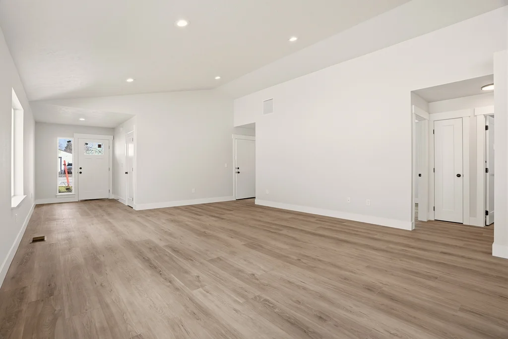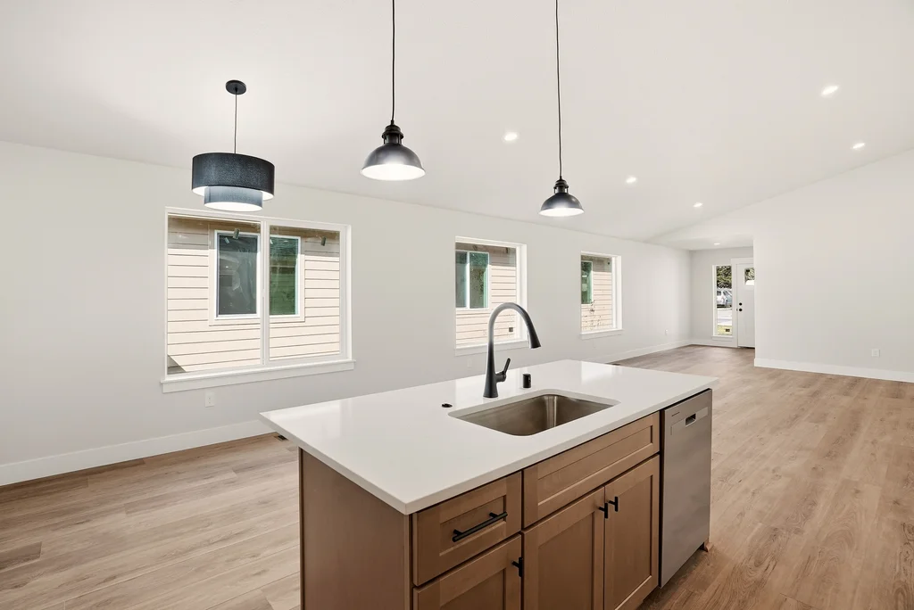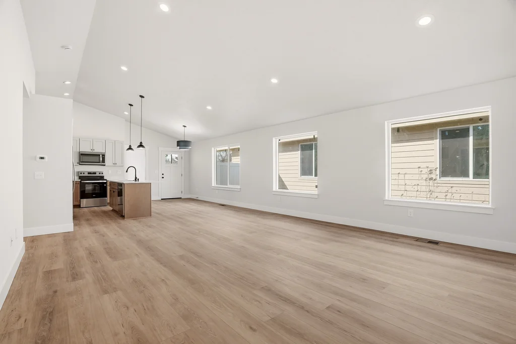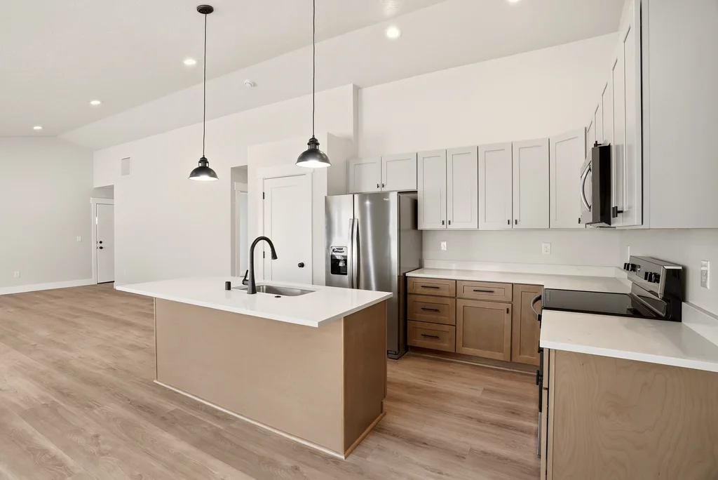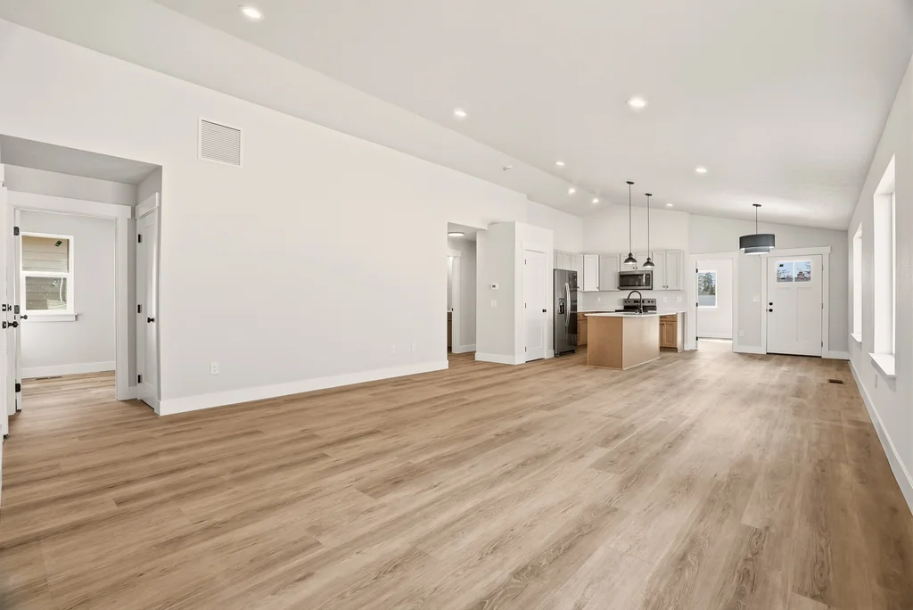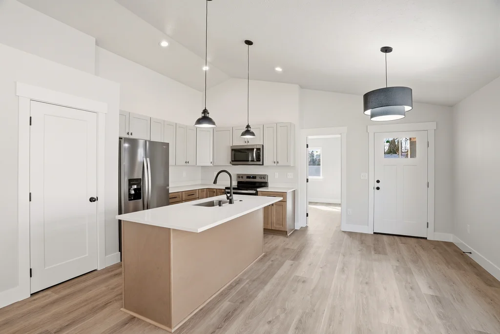 interior showcases premium upgrades including vaulted ceilings, rich LVP flooring, and a chef-inspired kitchen with quartz