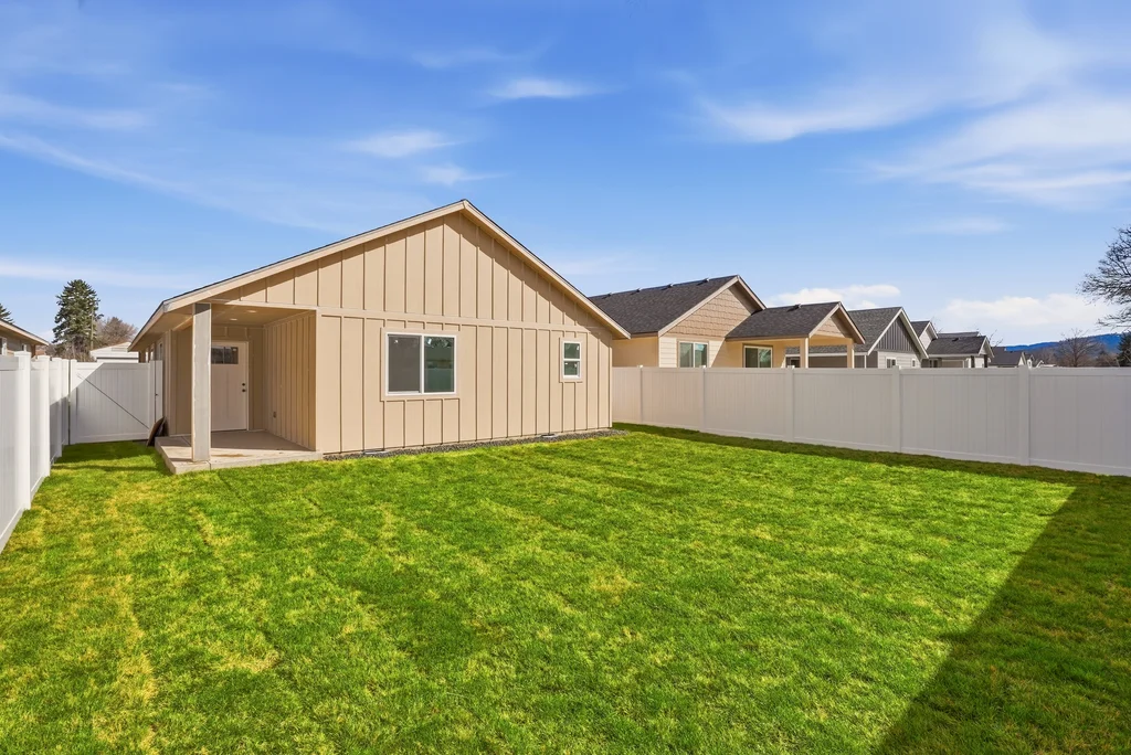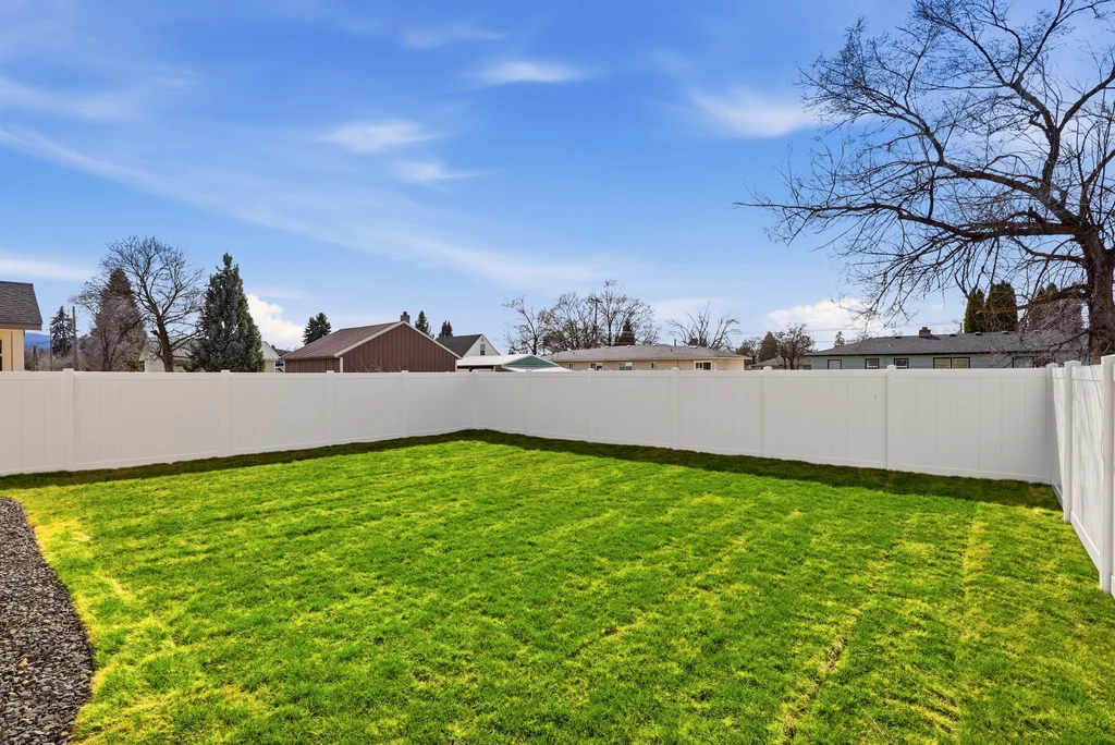 professional front and back landscaping, a full sprinkler system, and a premium white vinyl fence already installed. The 1,493 sq ft