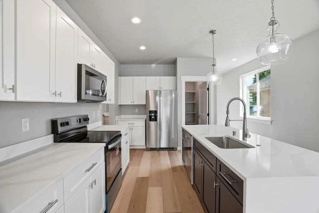 longevity and comfort, boasting high ceilings, LVP flooring throughout, and a spacious kitchen with quartz countertops and all