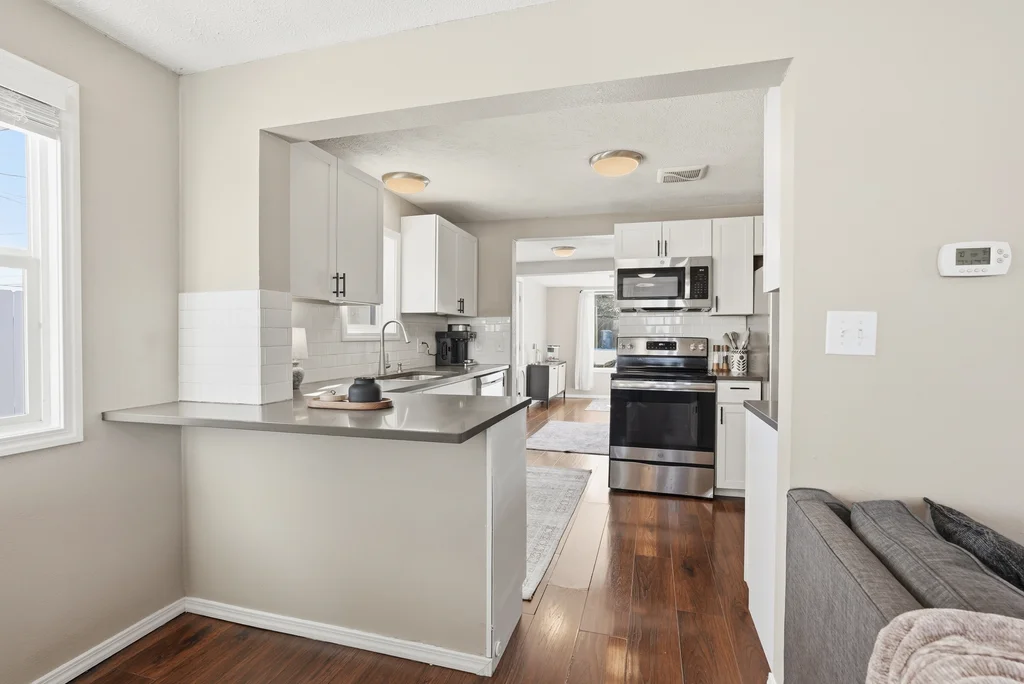 Welcome to your beautifully updated South Hill Craftsman home! This property features essential upgrades like a new roof, paid-off solar panels, an updated electrical panel, plumbing, brand new hot water tank, new stainless steel appliances and a new furnace. Inside, you'll find sleek quartz countertops and brand-new windows that effectively reduce road noise. The versatile basement provides ample storage and endless possibilities. Enjoy a side covered patio for entertaining and a welcoming front porch perfect for your morning coffee. With Trader Joe’s just a minute away, Target a quick 6-minute drive, and local coffee stands and restaurants around the corner, convenience is right out your doorstep. Move in and enjoy worry-free living, everything is ready for you!
