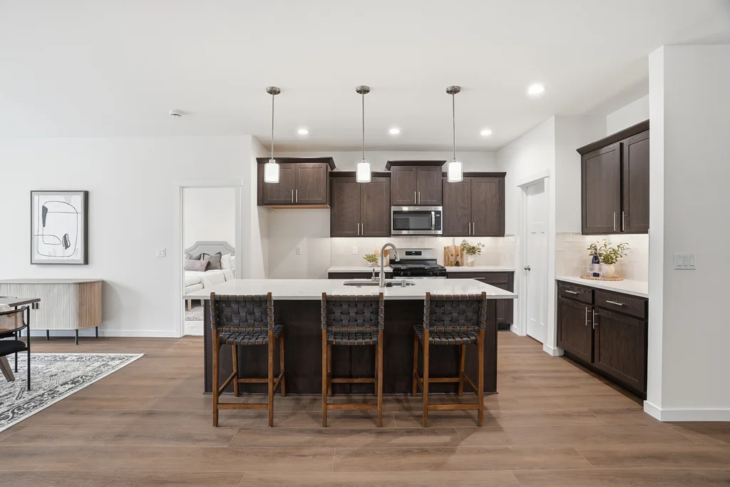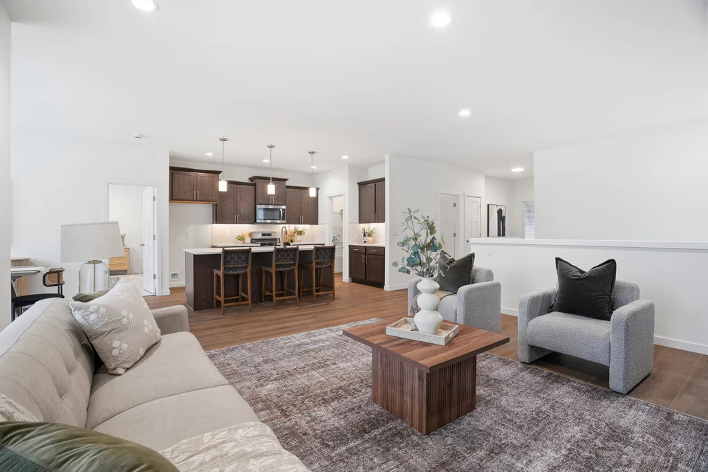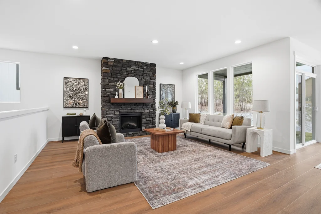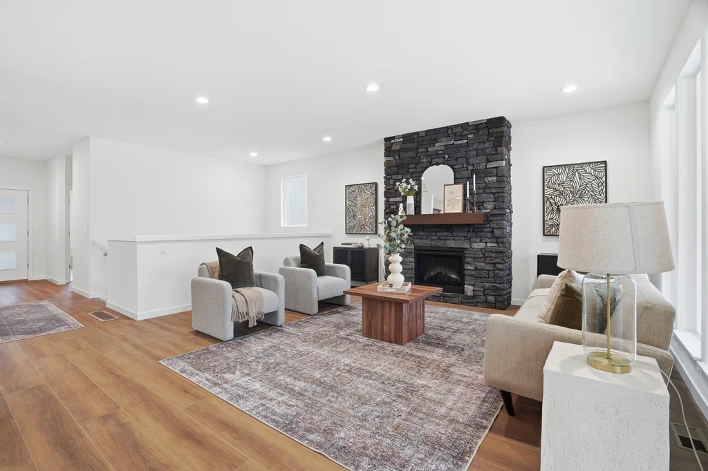 $10,000 SELLER CREDIT available! Welcome to Barranco Construction’s finest! This stunning modern rancher offers 5 bedrooms, 3 bathrooms, and over 3,350 sqft of thoughtfully designed living space, ideally located on a fully landscaped lot on the last quiet cul-de-sac street in SouthRidge! The open main floor features LVP flooring throughout, a stacked-stone fireplace, and a beautifully appointed kitchen with shaker cabinets, quartz countertops, stainless steel appliances with gas range, a walk-in pantry, and a large island with eat-up seating, plus a spacious dining area. The main-level primary suite includes a double vanity, tiled shower, a huge walk-in closet, and direct access to the laundry room, along with an additional bedroom and full bath. The fully finished basement offers 3 more bedrooms, a full bathroom, and a massive rec room. Built to current energy codes for efficiency and lower utility costs, this home includes forced air heating, central A/C, a covered patio for year-round entertaining, full sprinklers, and backs to a common area. A must-see!