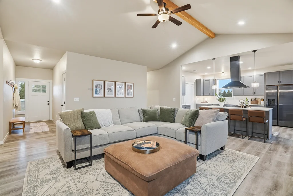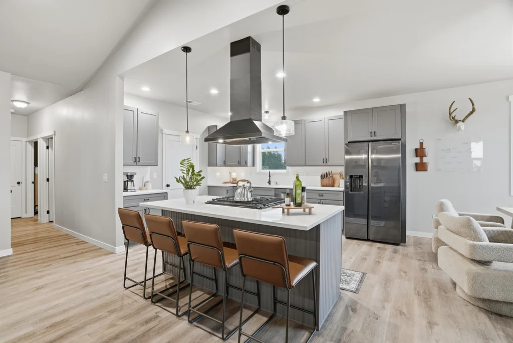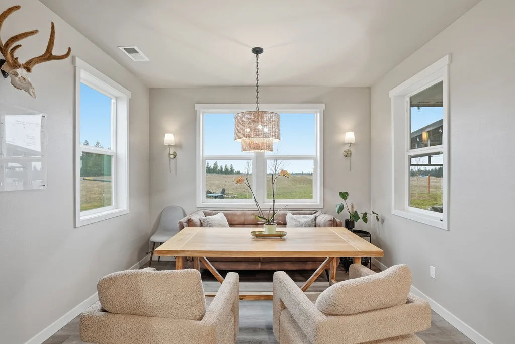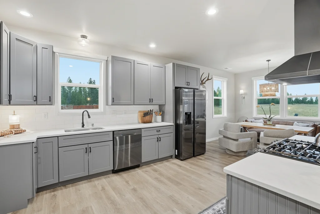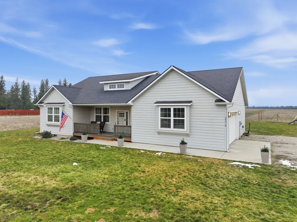 Set on 5.02 flat, usable acres w/ mountain views, this single-level home offers space, privacy & flexibility—ideal for a growing family, homestead vision, or those downsizing without giving up land. The 1,592 sqft layout features 3 bedrooms & 2 bathrooms, including an oversized primary suite with walk-in closet, double sinks & walk-in shower. The open kitchen is designed for function & gathering with quartz countertops, a island with freestanding propane range, and a massive pantry. Enjoy outdoor living from the covered front & back porches or relax on the custom concrete patio with gazebo & hot tub hookup. The property is almost fully fenced, level & ready for animals, gardens, or a future shop. A 2-car garage adds convenience, while the peaceful Deer Park setting offers privacy & room to breathe—without close neighbors.