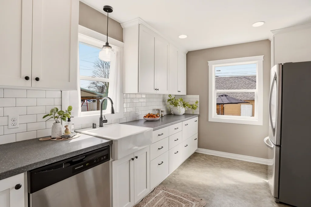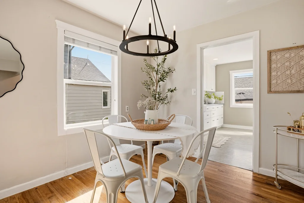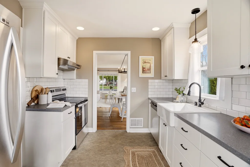 The kitchen is both functional and thoughtfully updated, featuring stainless steel appliances and upgraded cabinetry that maximizes storage.