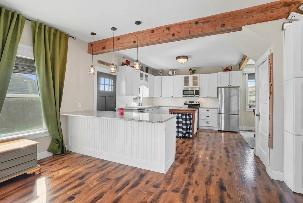 Welcome to this updated 3-bed, 3-bath home on 10 acres of private and secluded land. The home was updated in 2016 with a new roof, windows, flooring, and fixtures. You will love the open floor plan with rustic exposed beams and the chef's kitchen featuring granite counters and a vintage farm sink. The large main-floor primary bedroom is a private retreat with a walk-in closet and a bath featuring a claw-foot tub and separate shower. The utility of this property is unmatched, with a 3-car garage, a massive 36' x 60' Quonset shop (concrete floor), PLUS a 40' x 70' equipment barn. Enjoy the peaceful setting as the only home on a quiet dead-end road, complete with a greenhouse, bunk house, and productive well. This property delivers the ultimate combination of modern comfort, complete peace and superior utility.
