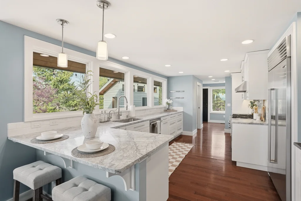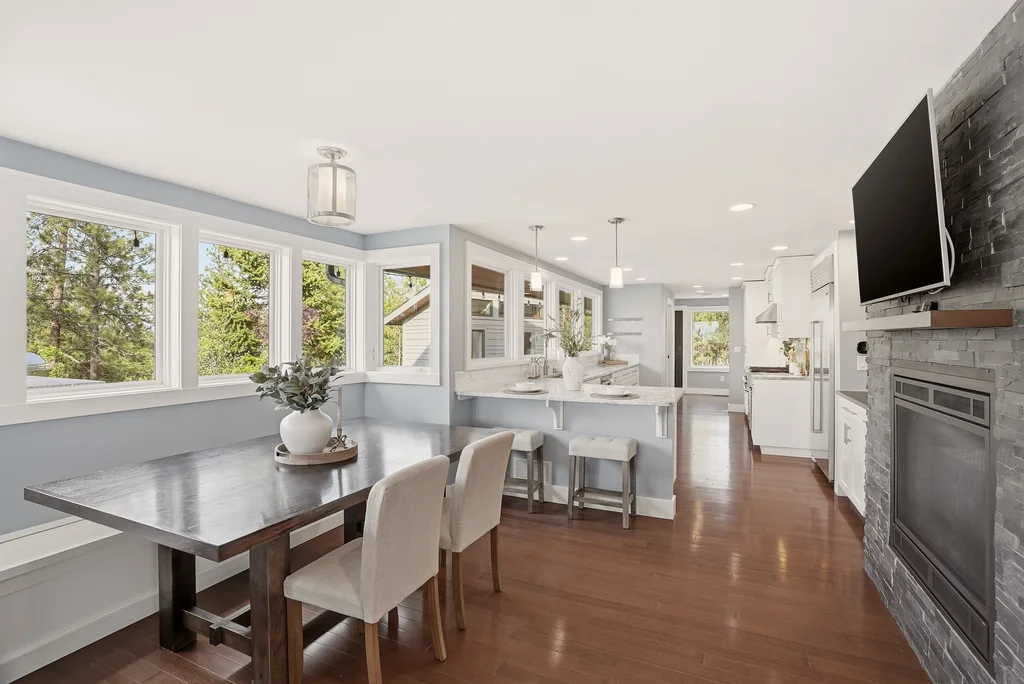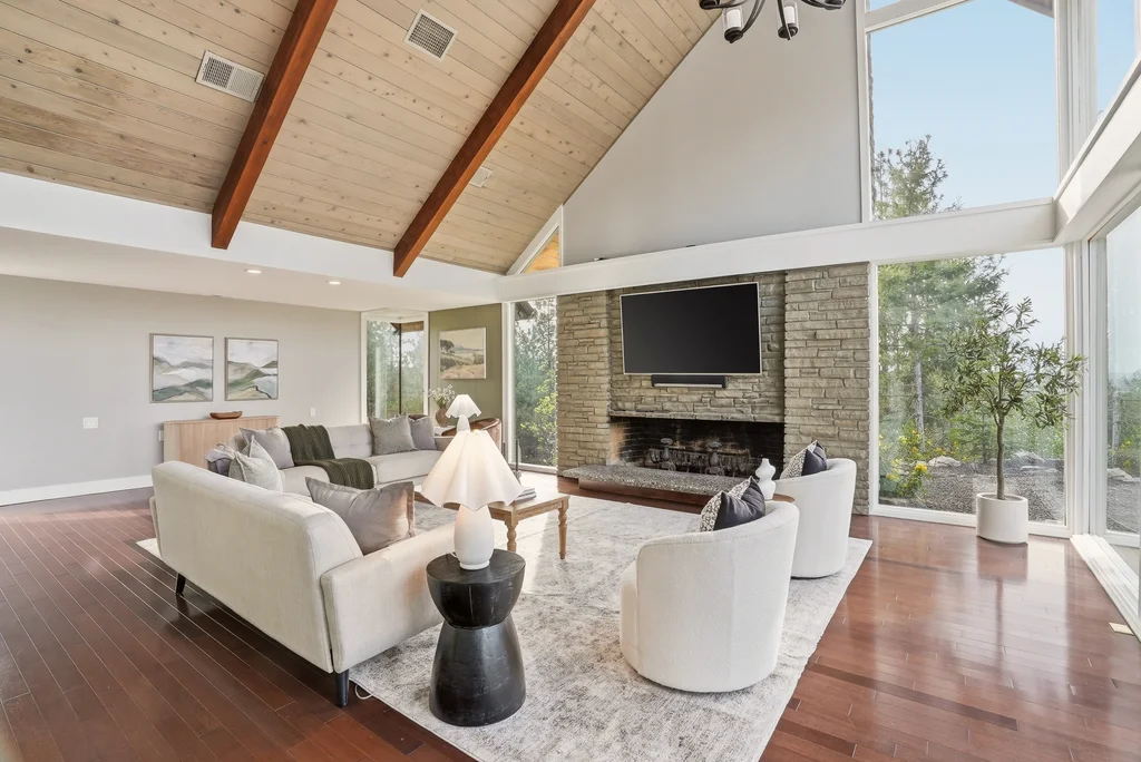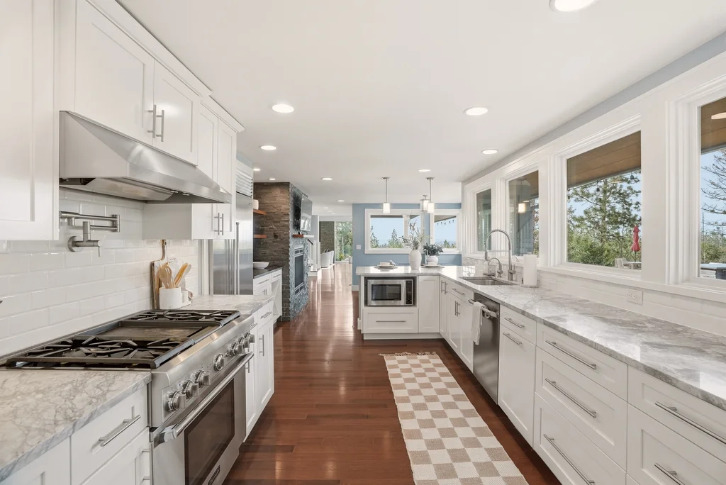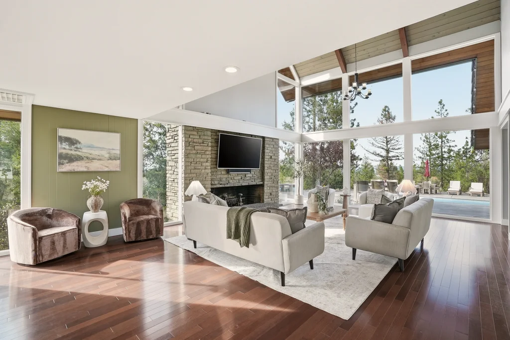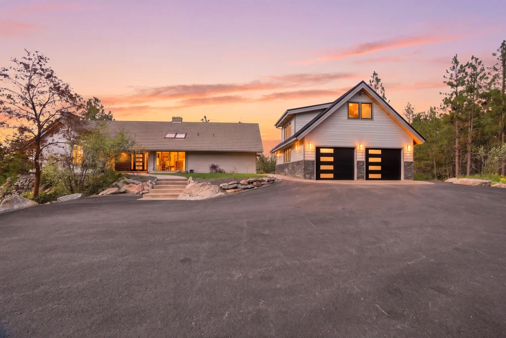 Beautifully updated Don Neraas custom home on 3.85 private acres with sweeping views of downtown and unforgettable sunsets. With 4,086 sq ft of refined living, this 4 bedroom and 4 bath home is designed for effortless main floor living with a luxurious primary ensuite complete with built-in closets and a steam shower. A spacious great room, office or formal dining space, laundry, and a custom kitchen makes it ideal for entertaining. Upstairs includes two bedrooms, a loft, and wet bar, while the lower level offers a rec room, additional bedroom, and bath—perfect for guests.