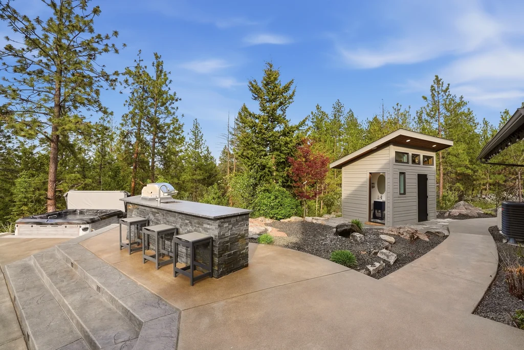 Step outside to your own resort-style retreat with a 2019 in-ground salt water pool, outdoor kitchen, fire pit, hot tub, putting green, and bath house. The newly built (2025) oversized heated shop includes EV hookup and a studio apartment above, plumbed and ready for your finishing touches. A rare blend of privacy, luxury, and lifestyle.