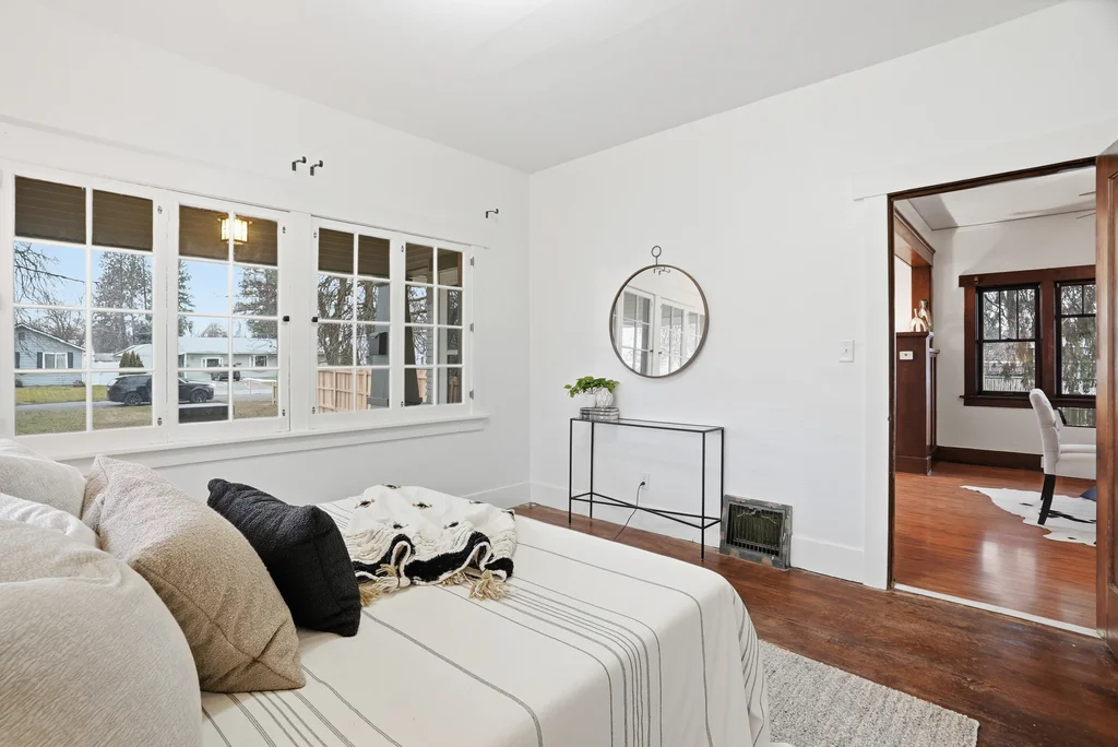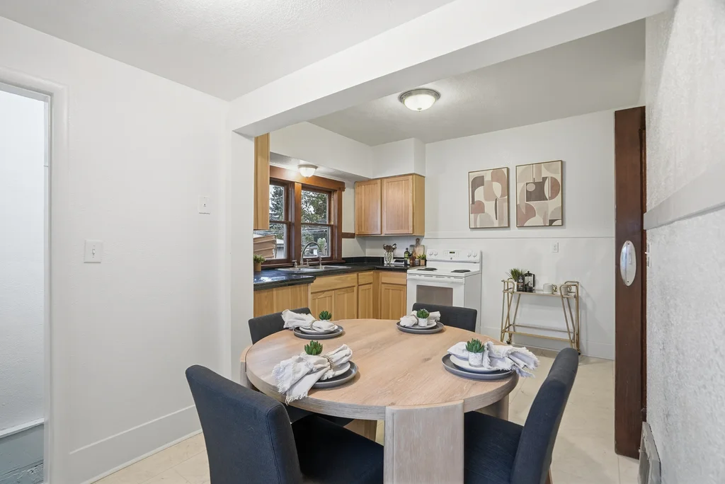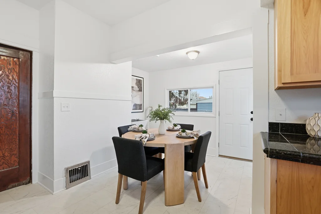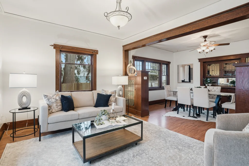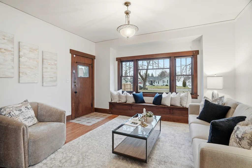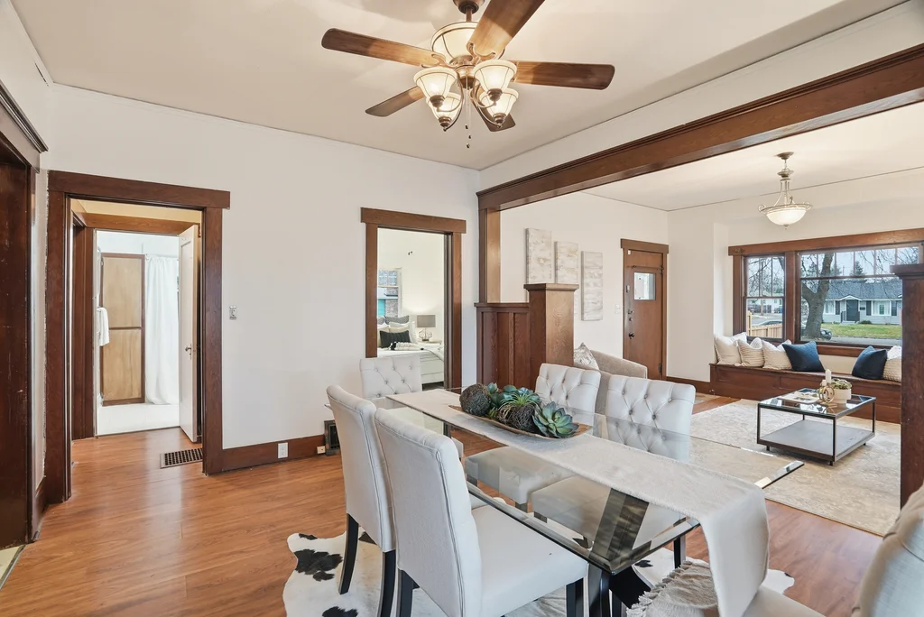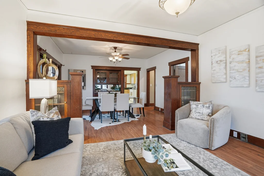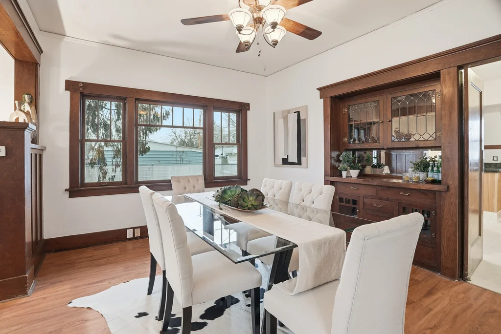 Classic craftsman bungalow that’s updated and move-in ready! This is the type of cozy, nostalgic home that warms your heart and puts a smile on your face. Enjoy historic features starting with the appealing craftsman design and the covered front porch, to the original wood trim, large built-in hutch in the dining room, front window bench seat, & even built-in bookcases in the living room. Spacious main floor includes formal living and dining room, 2 bedrooms, bright kitchen & laundry hookups. Maintained in and out with fresh paint, new kitchen & bath flooring and extensively updated electrical, including a brand new panel and mostly new wiring. Basement has a finished bedroom (non-egress), tall ceilings and space for an additional bedroom, bath & rec room! Nicely enclosed & private outdoor spaces, including a huge front lawn and back/side yard with large shade tree. Parking pad off alley in back plus space for more parking or future garage if desired. Pre-inspected for your peace of mind. Don’t delay on this