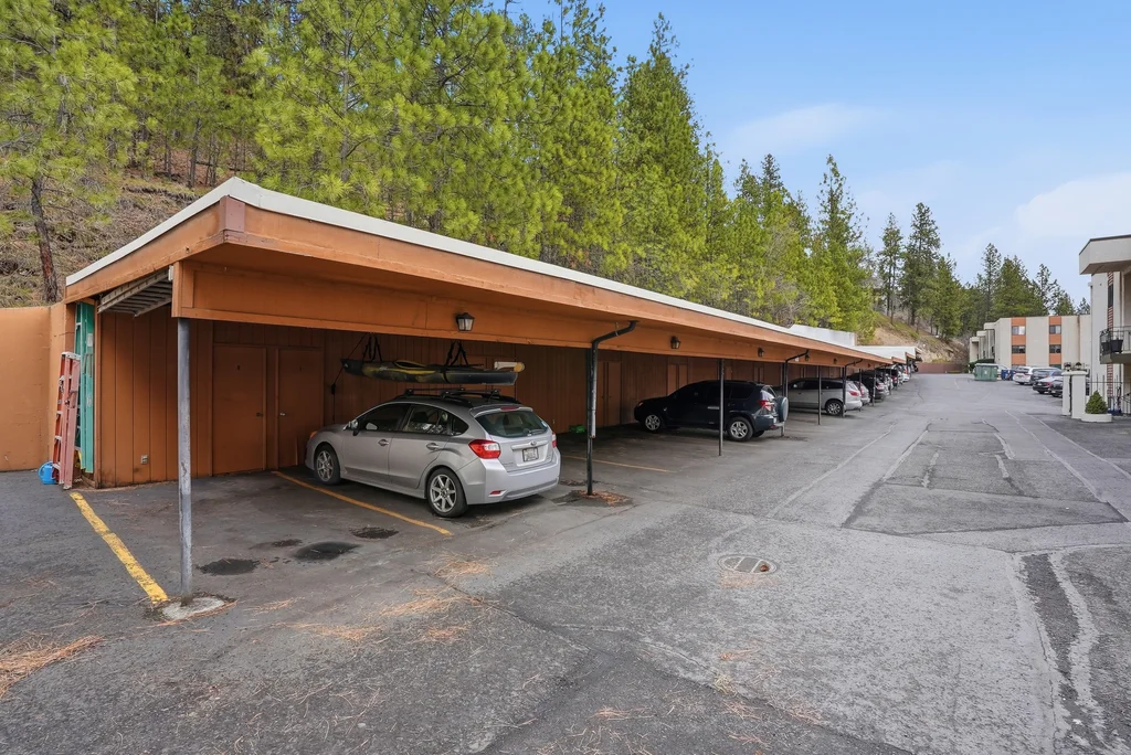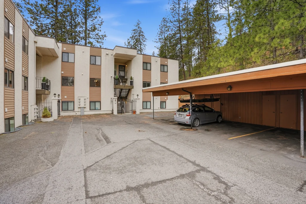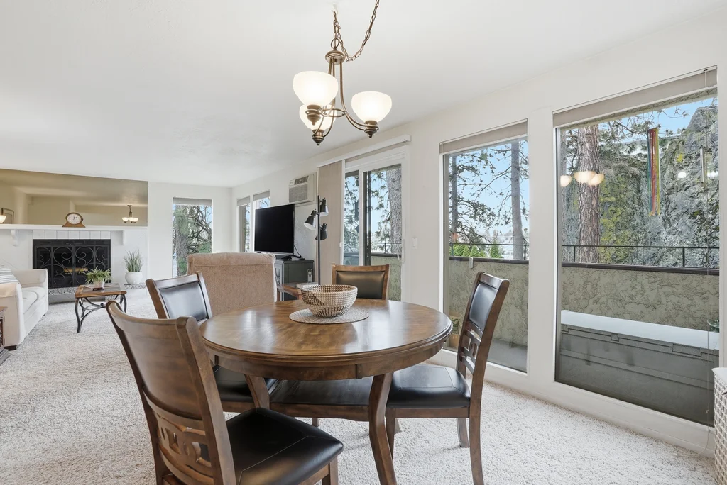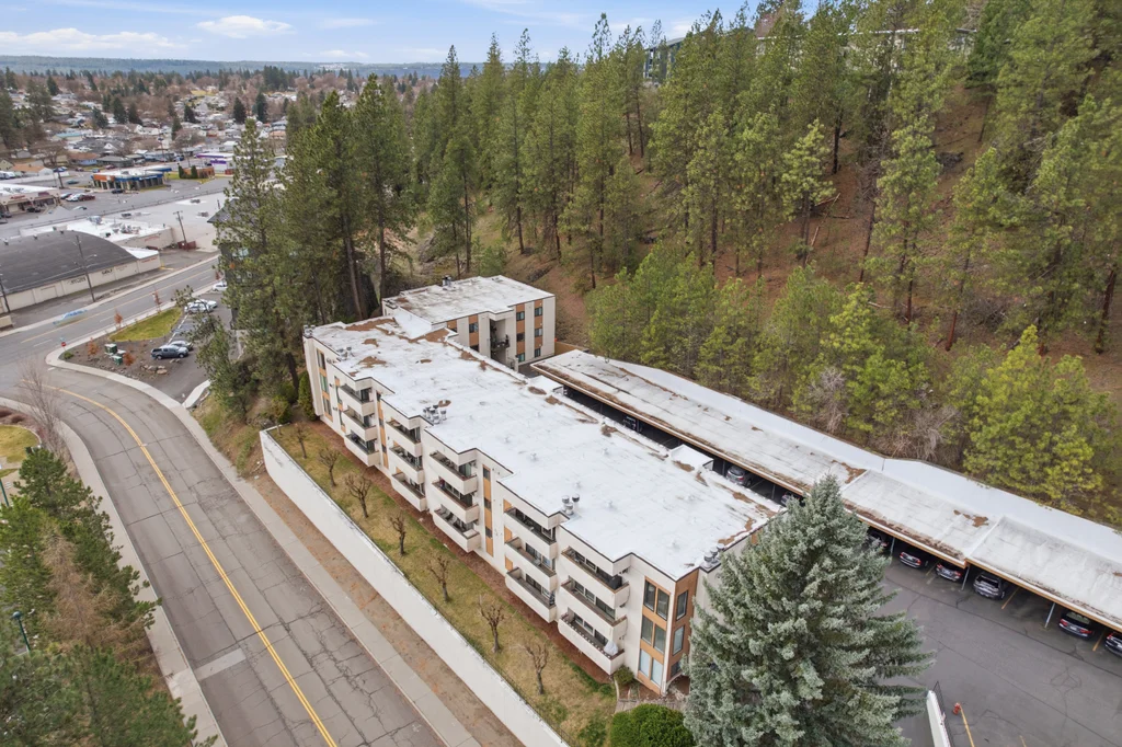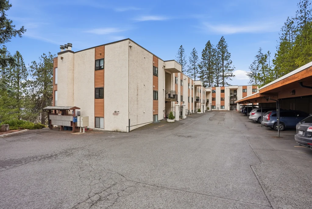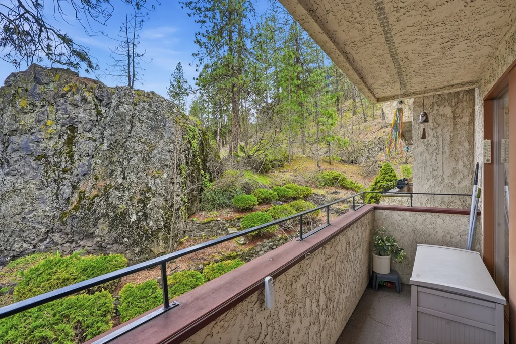 Located in the highly desirable Five Mile area of North Spokane, this 2nd level corner-unit condo offers both privacy and space, featuring the largest floor plan in the complex at 968 sq ft. This 2 bed, 2 bath home is move-in ready with fresh LVP flooring and updated kitchen appliances with granite counters. The spacious primary suite includes a walk-in closet and its own 3/4 bath, while large windows bring in natural light and overlook a peaceful, wooded setting, creating a calm and quiet retreat. Enjoy year-round comfort with a cozy wood-burning fireplace and your own private balcony, perfect for morning coffee or unwinding at the end of the day. All appliances stay, including washer and dryer, making this an easy transition for the next owner. The unit also includes a covered parking space with additional storage. Ideally located just minutes from Five Mile favorites like Cascadia Public House, The Boiler Room, and QQ Sushi, along with Rosauers and a nearby Park N Ride for easy commuting.