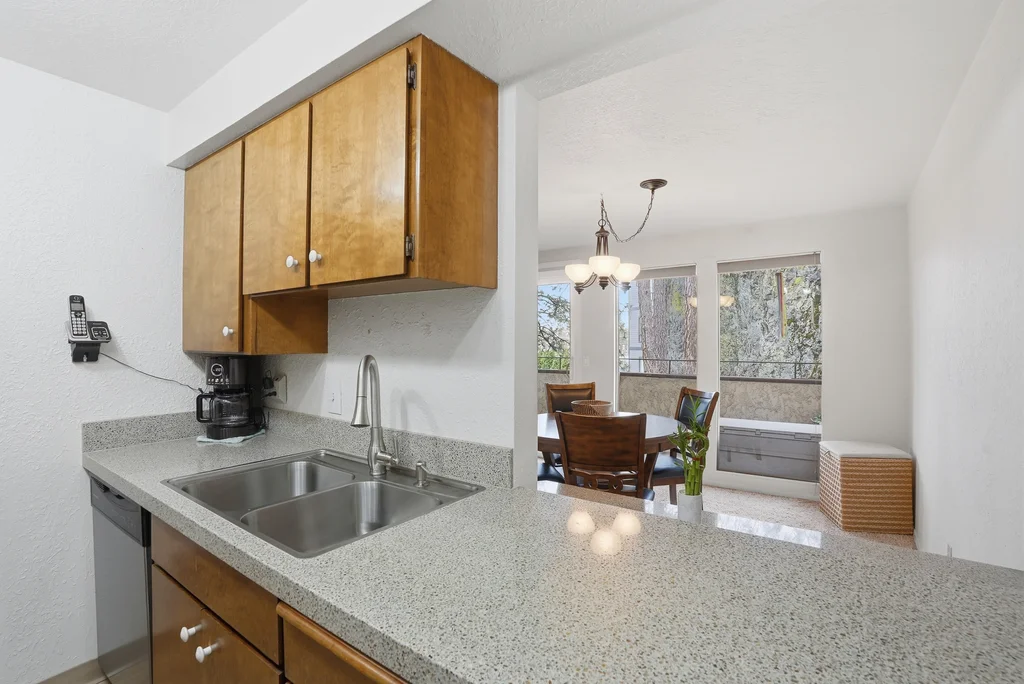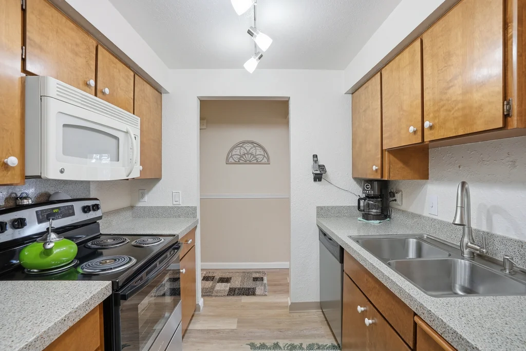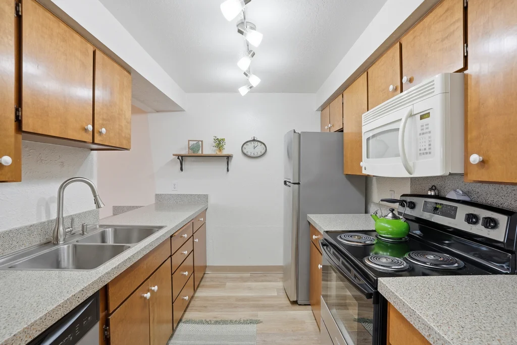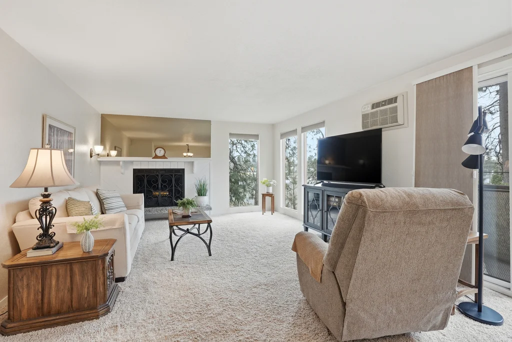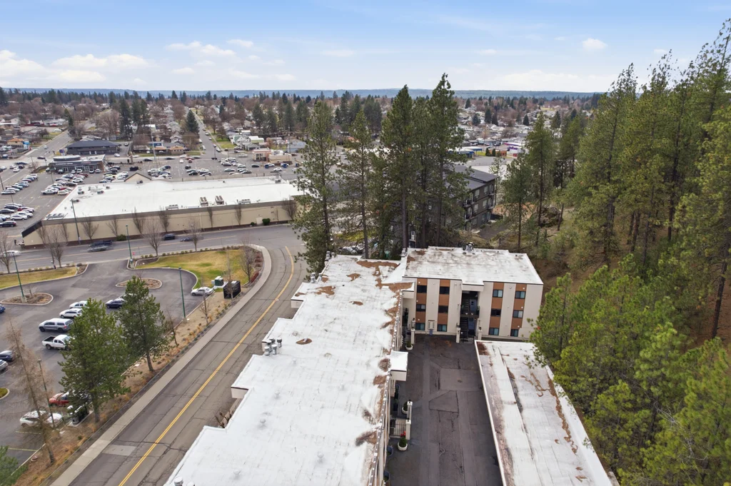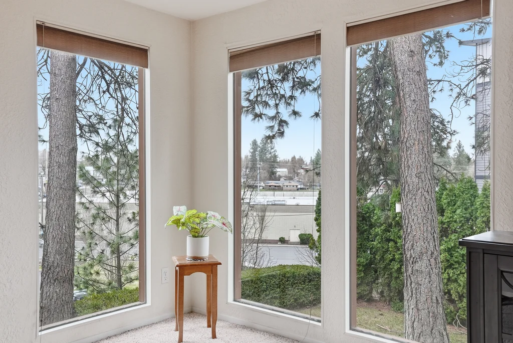Located in the highly desirable Five Mile area of North Spokane, this 2nd level corner-unit condo offers both privacy and space, featuring the largest floor plan in the complex at 968 sq ft. This 2 bed, 2 bath home is move-in ready with fresh LVP flooring and updated kitchen appliances with granite counters. The spacious primary suite includes a walk-in closet and its own 3/4 bath, while large windows bring in natural light and overlook a peaceful, wooded setting, creating a calm and quiet retreat. Enjoy year-round comfort with a cozy wood-burning fireplace and your own private balcony, perfect for morning coffee or unwinding at the end of the day. All appliances stay, including washer and dryer, making this an easy transition for the next owner. The unit also includes a covered parking space with additional storage. Ideally located just minutes from Five Mile favorites like Cascadia Public House, The Boiler Room, and QQ Sushi, along with Rosauers and a nearby Park N Ride for easy commuting.