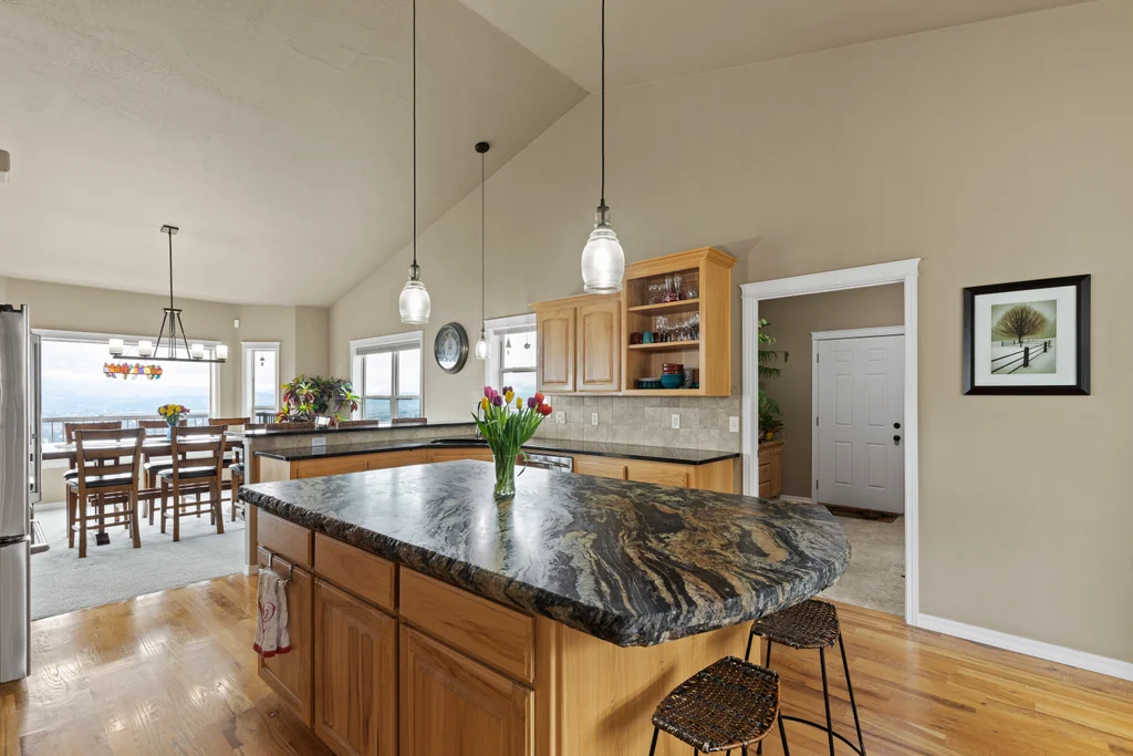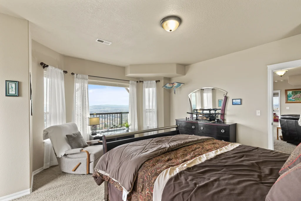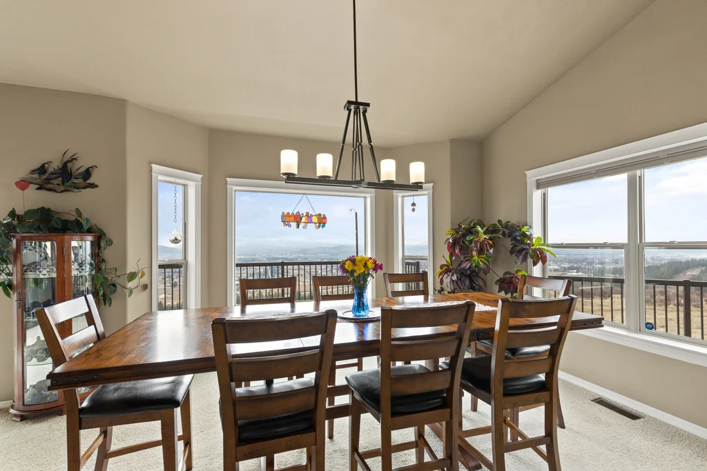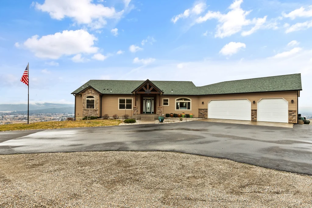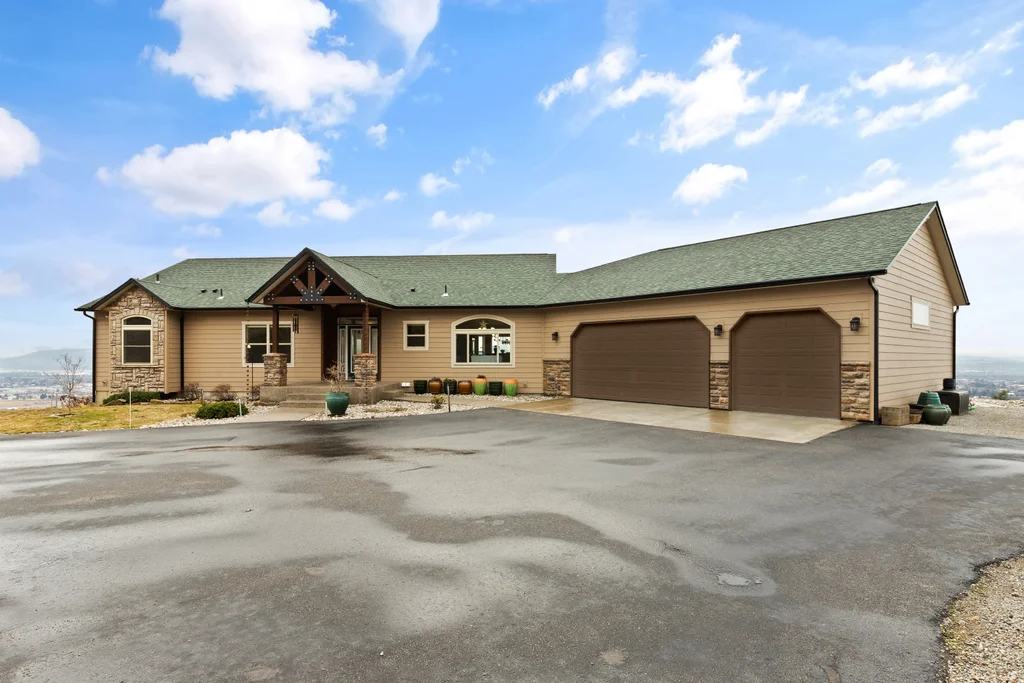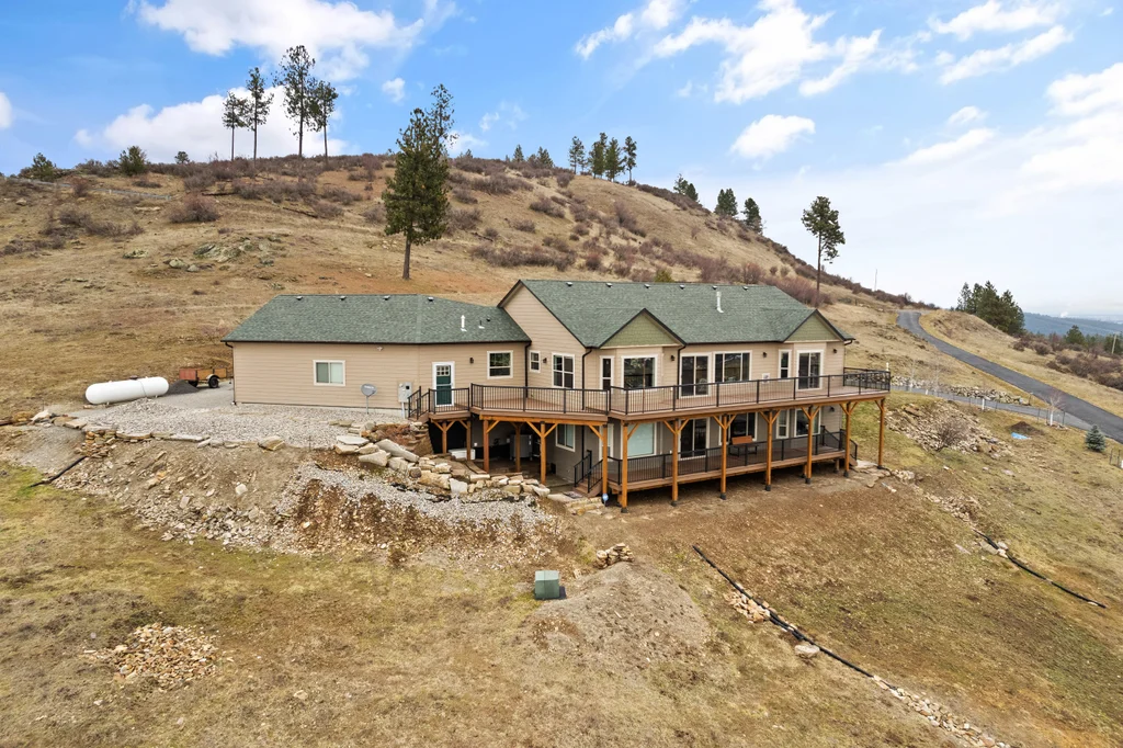Wow!! 180-degree, unobstructed views of the Spokane Valley in this beautifully updated daylight rancher. 5-bedrooms and 4.5 baths. This home has had many high-quality updates. Over 2,200 sq ft on the main. You have vaulted ceilings in main living area and in the primary bedroom. Plenty of room to entertain w/ formal and informal dining spaces to host your guests. Large kitchen w/ all the amenities plus a large island with custom granite slab and pantry. HUGE primary bedroom (20'x23') w/ private slider, fireplace and 5-pt bath. The lower level has been completely finished w/ 3-bedrms and 3 beautiful baths...two of which are on-suites. Plus there is a kitchenette and additional laundry for long-term guests. Generac system for backup power that runs the entire panel. Dual heat/cool zones for main floor and basement. 3,000 gall cistern for water storage. New deck system in 2023 using Timber Tek products. New roof 50yr roof in 2021. Oversized 3-car garage...parking, storage, and work area.