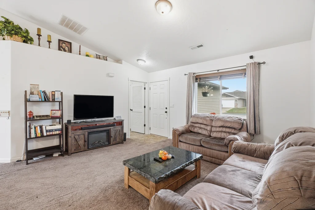 more seating. There are 2 more bedrooms and another full bathroom. Laundry room is off the attached 2 car garage. Spacious front