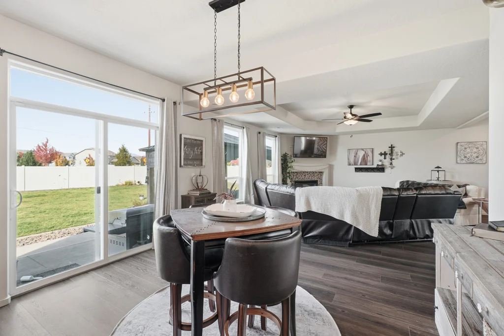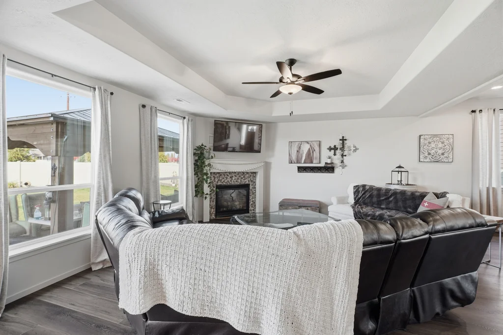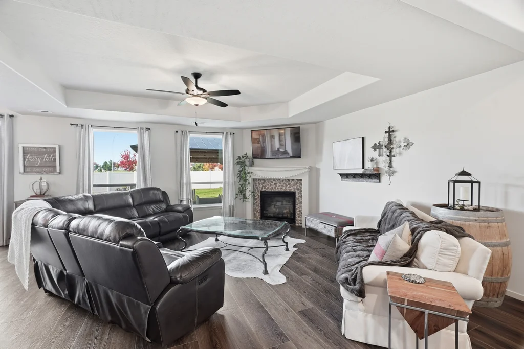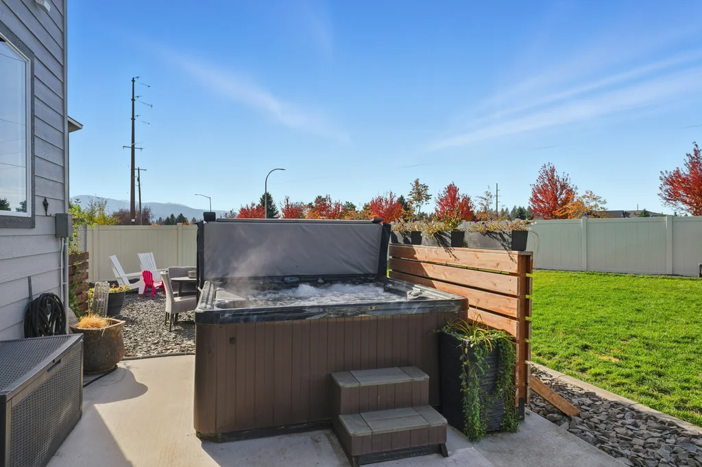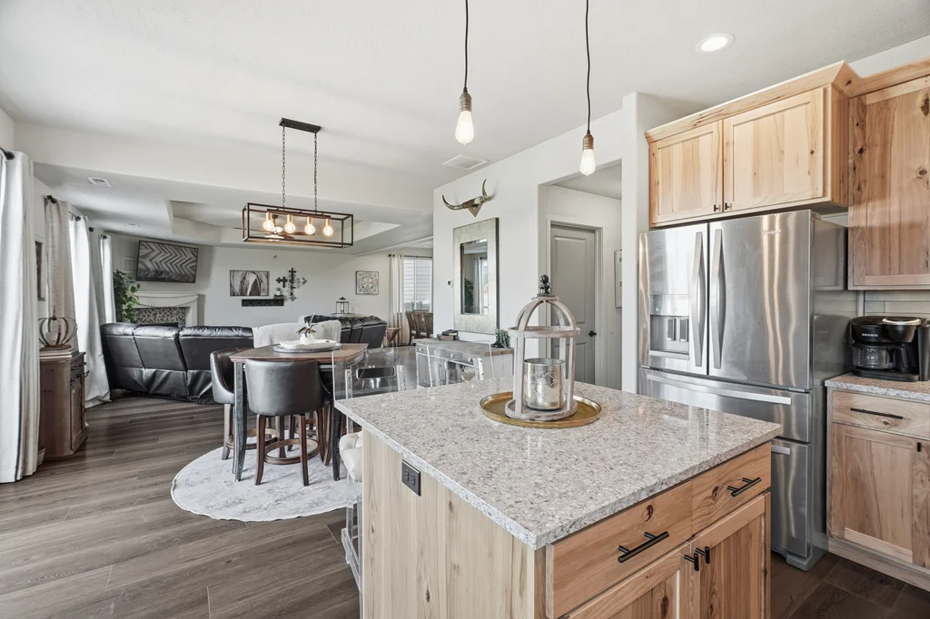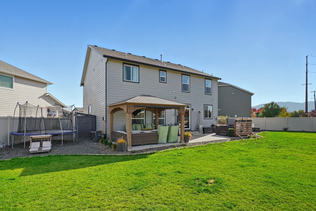 Step into this beautiful 2022 Parade of Homes design featuring a grand entry, open living and dining, and a kitchen made for connection—with quartz countertops, walk-in pantry, and warm hickory cabinets. The upstairs layout offers comfort and convenience with a large primary suite, walk-in closet, and laundry nearby. Enjoy upgrades throughout—AC, gas fireplace, premium lighting, and 8' garage doors. Outside, a fully fenced and landscaped yard offers space to play, unwind, and entertain. Nestled in North Place, a community with private parks and walking paths, this home perfectly blends modern comfort with small-town Post Falls charm.