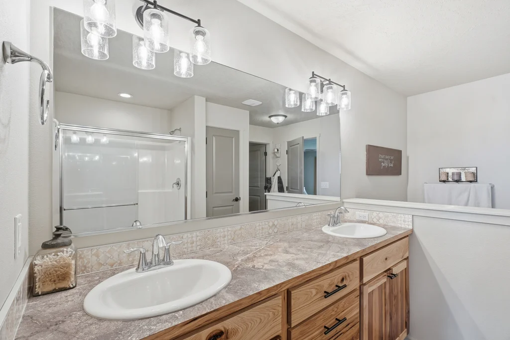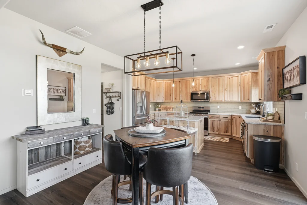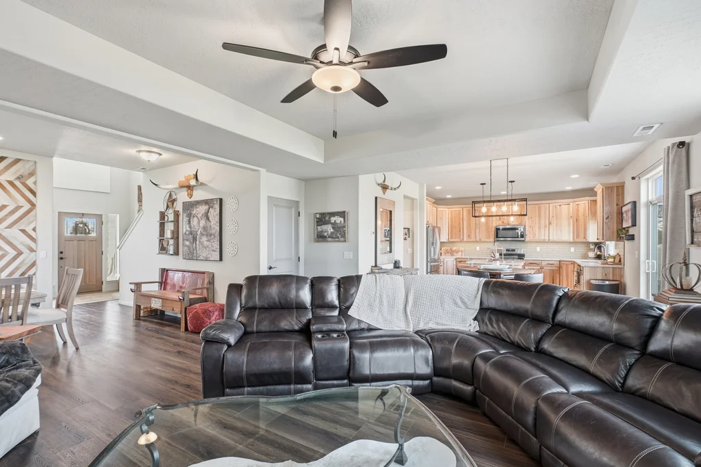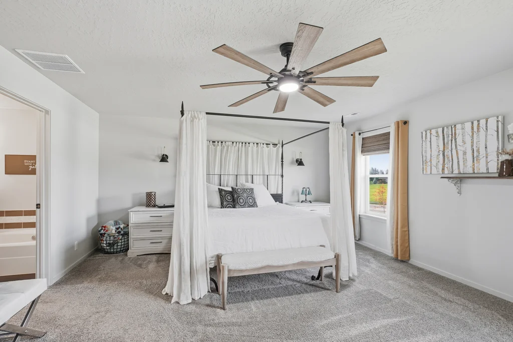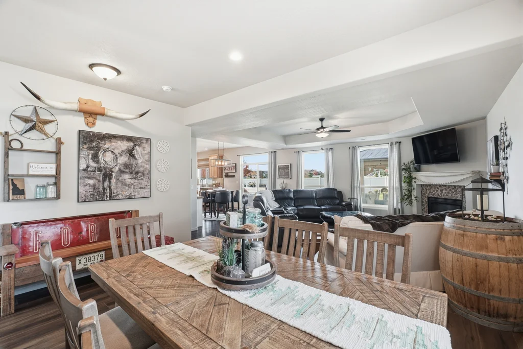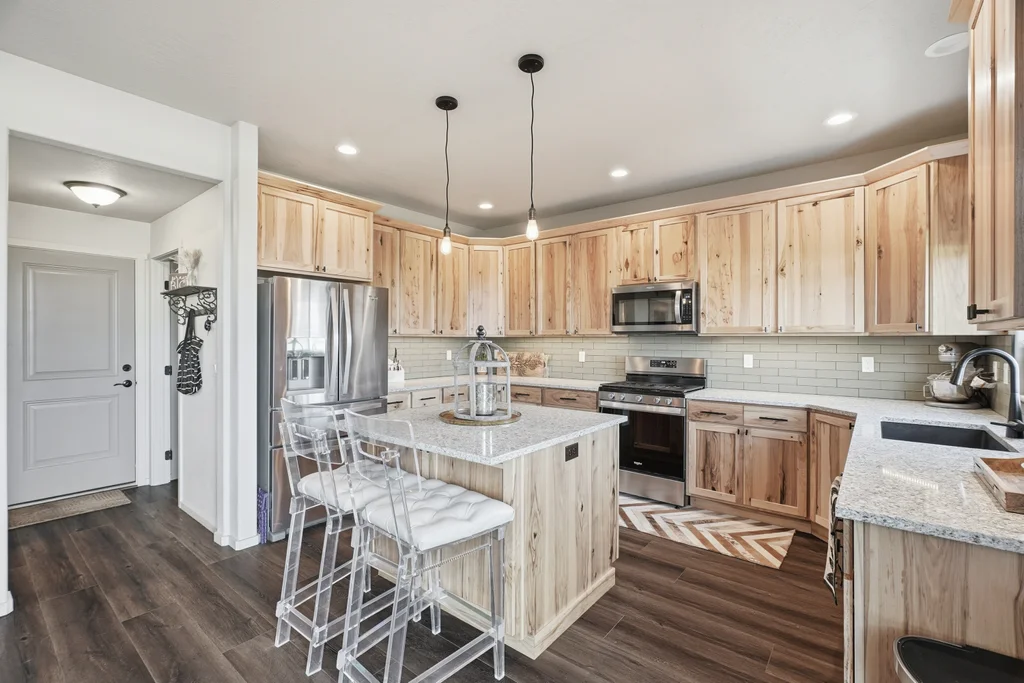 Step into this beautiful 2022 Parade of Homes design featuring a grand entry, open living and dining, and a kitchen made for connection—with quartz countertops, walk-in pantry, and warm hickory cabinets. The upstairs layout offers comfort and convenience with a large primary suite, walk-in closet, and laundry nearby. Enjoy upgrades throughout—AC, gas fireplace, premium lighting, and 8' garage doors. Outside, a fully fenced and landscaped yard offers space to play, unwind, and entertain. Nestled in North Place, a community with private parks and walking paths, this home perfectly blends modern comfort with small-town Post Falls charm.