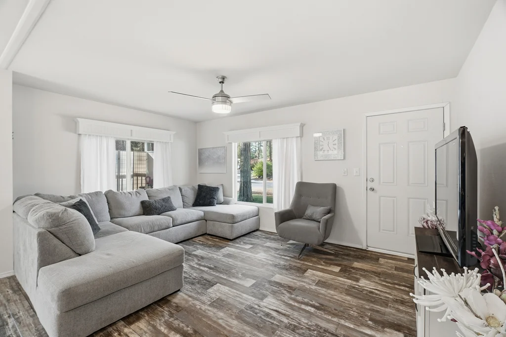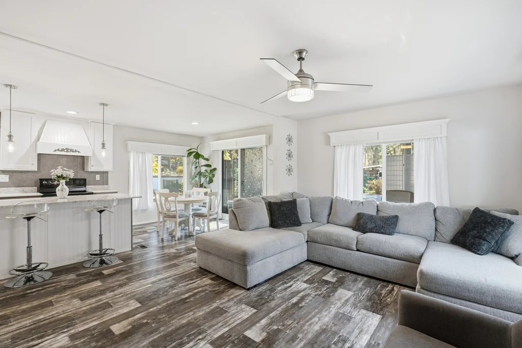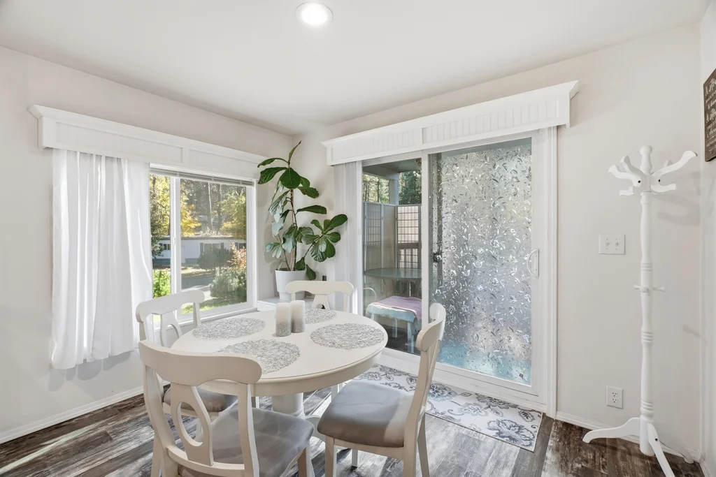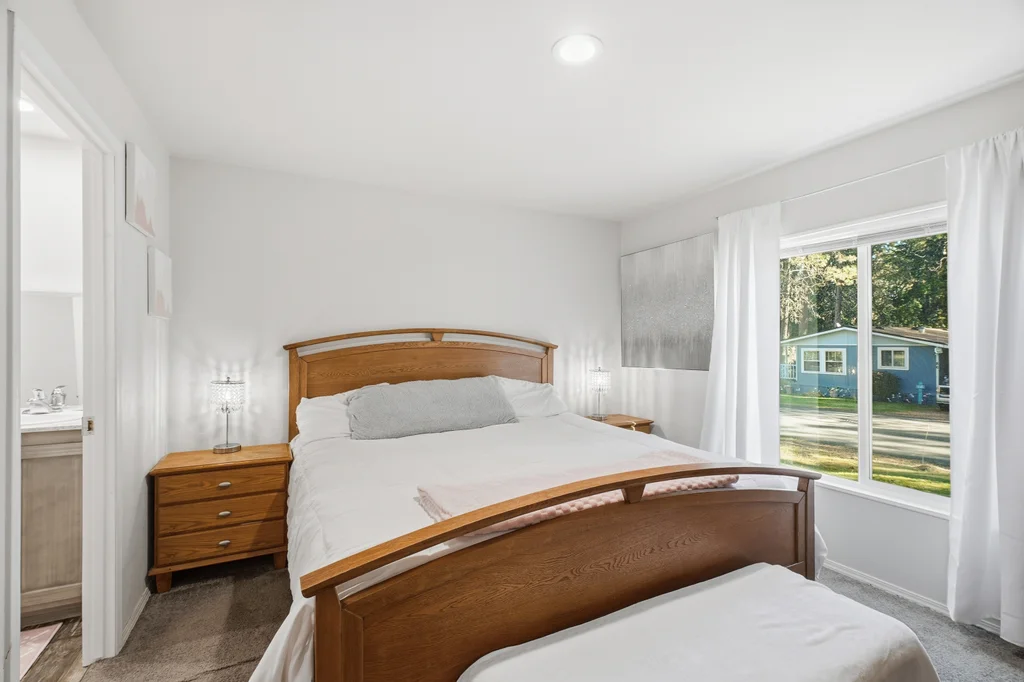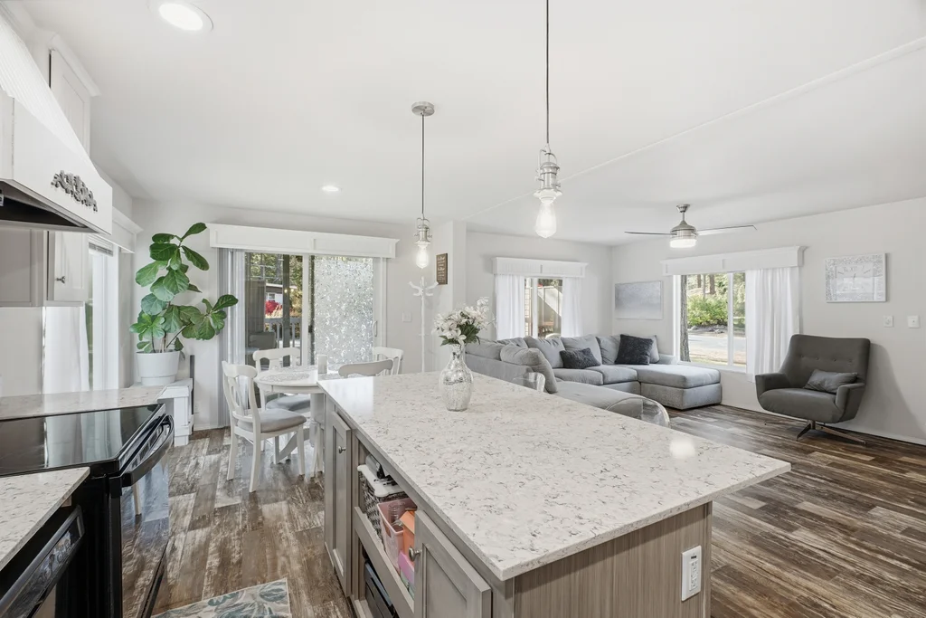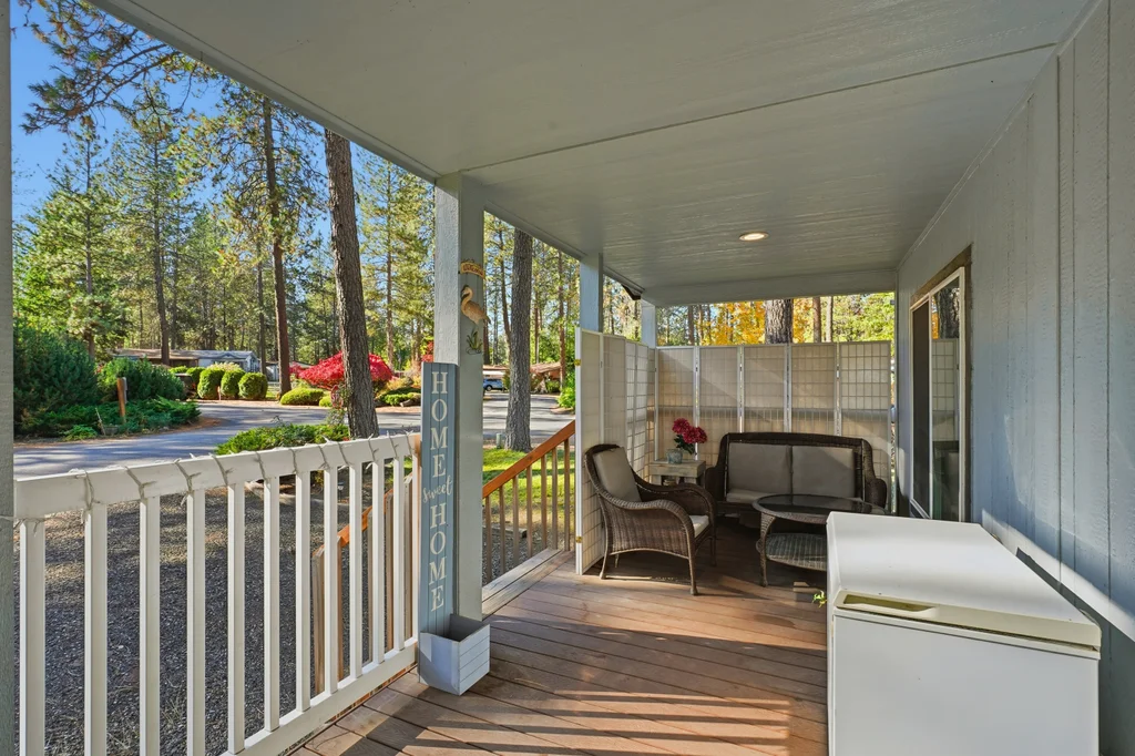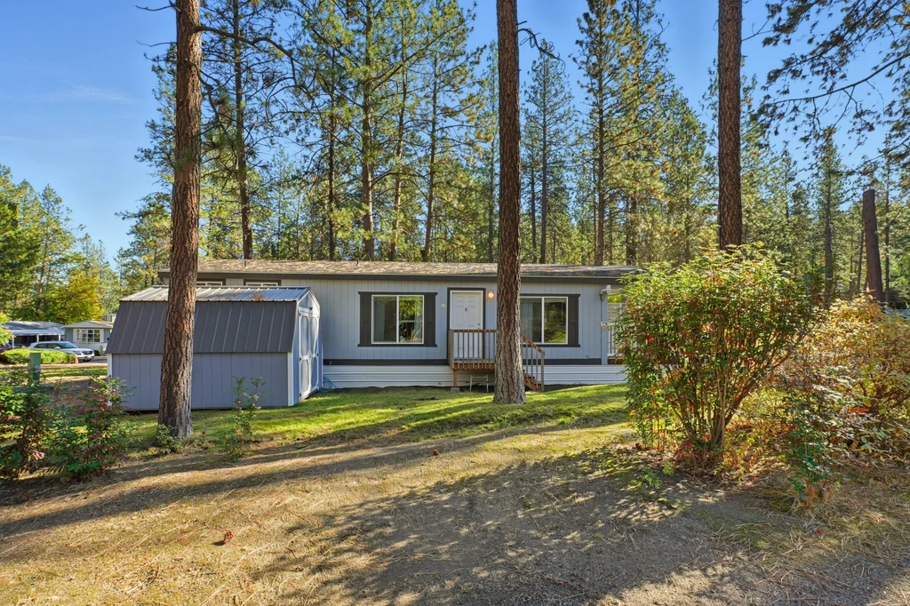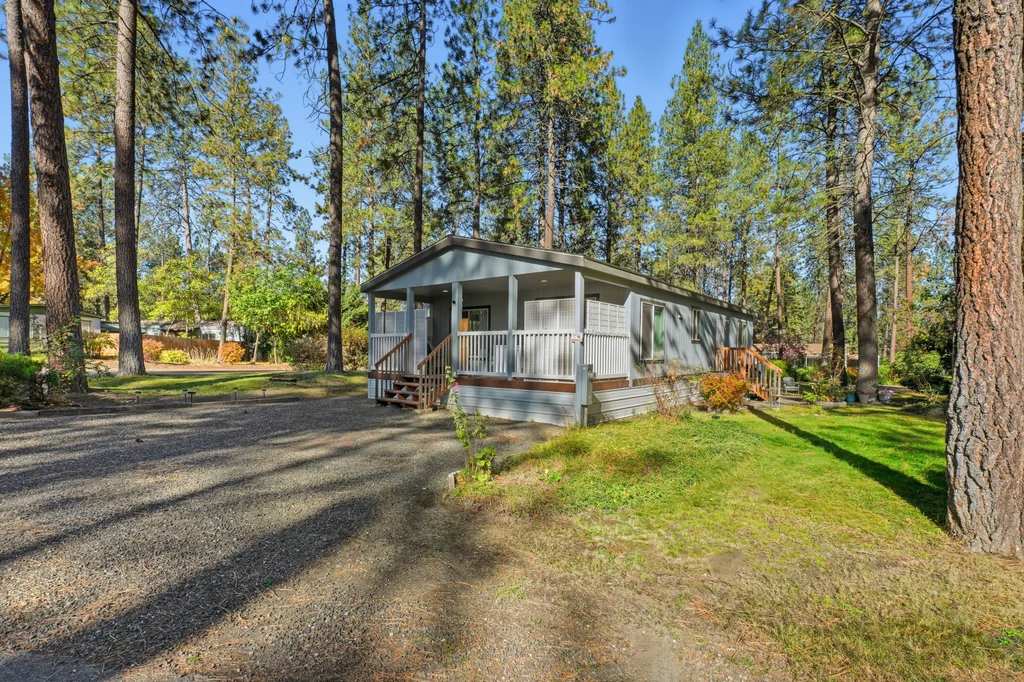 Nestled in a peaceful, rural setting near the South Hill, Mullen Terrace Manufactured Home Community offers the perfect blend of privacy and convenience. Surrounded by mature trees and natural beauty, this community provides a quiet retreat just minutes from shopping and downtown Spokane. This home features an open and spacious layout with 2 bedrooms and 2 bathrooms. Enjoy the bright living and dining area, a stylish kitchen with a granite-topped island, and plush carpeted bedrooms with walk-in closets. A large utility room includes exterior access for added convenience. Step outside to a nice-sized deck—perfect for relaxing—and take advantage of ample surface parking. The community also offers secured RV storage, plus internet and cable availability. Don’t miss your chance to own a new home in this beautiful, tucked-away community!
